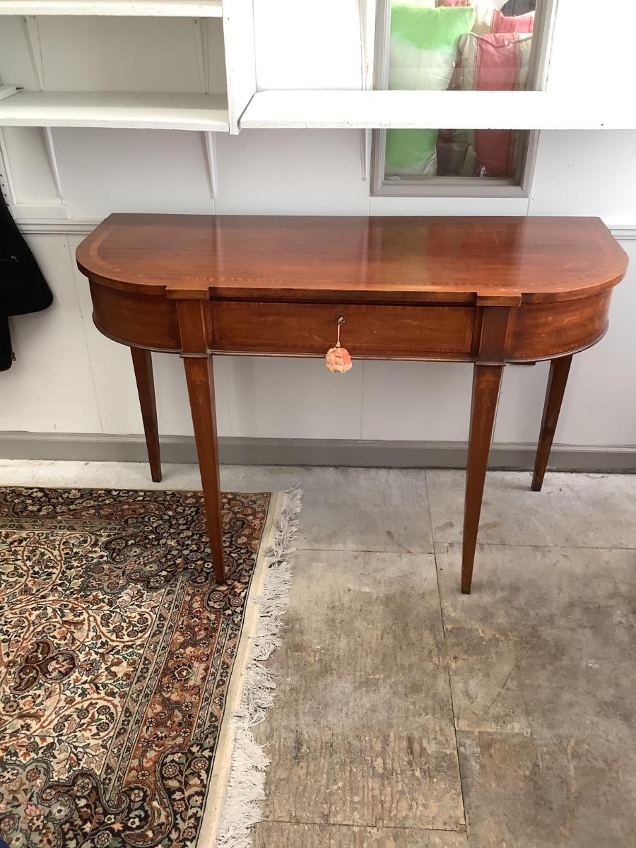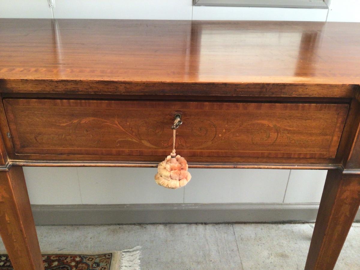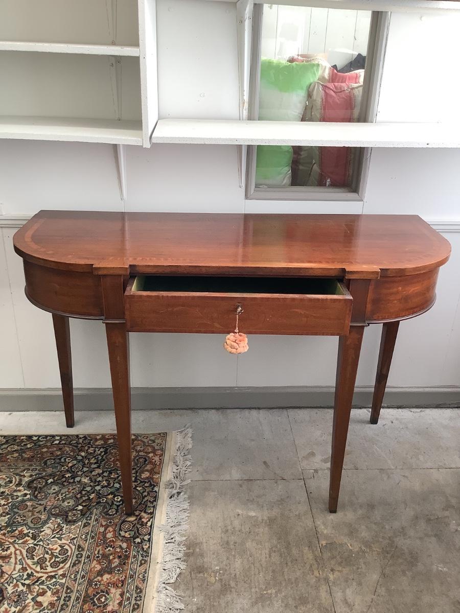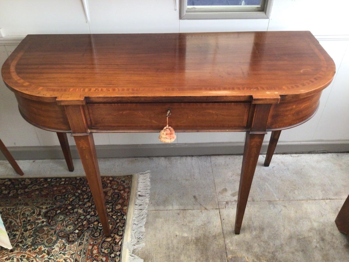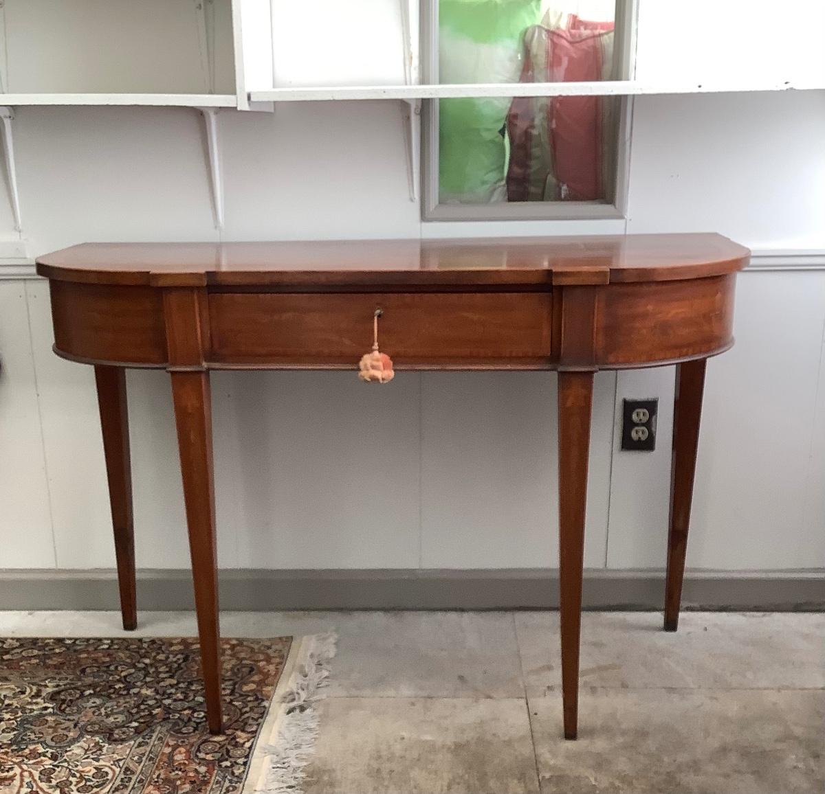 Vintage Mahogany Console table with inlay, appears to have had a stretcher at one time.