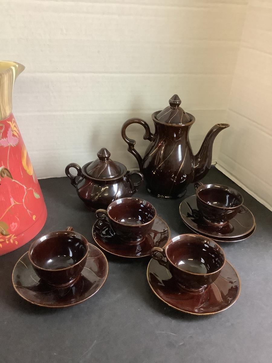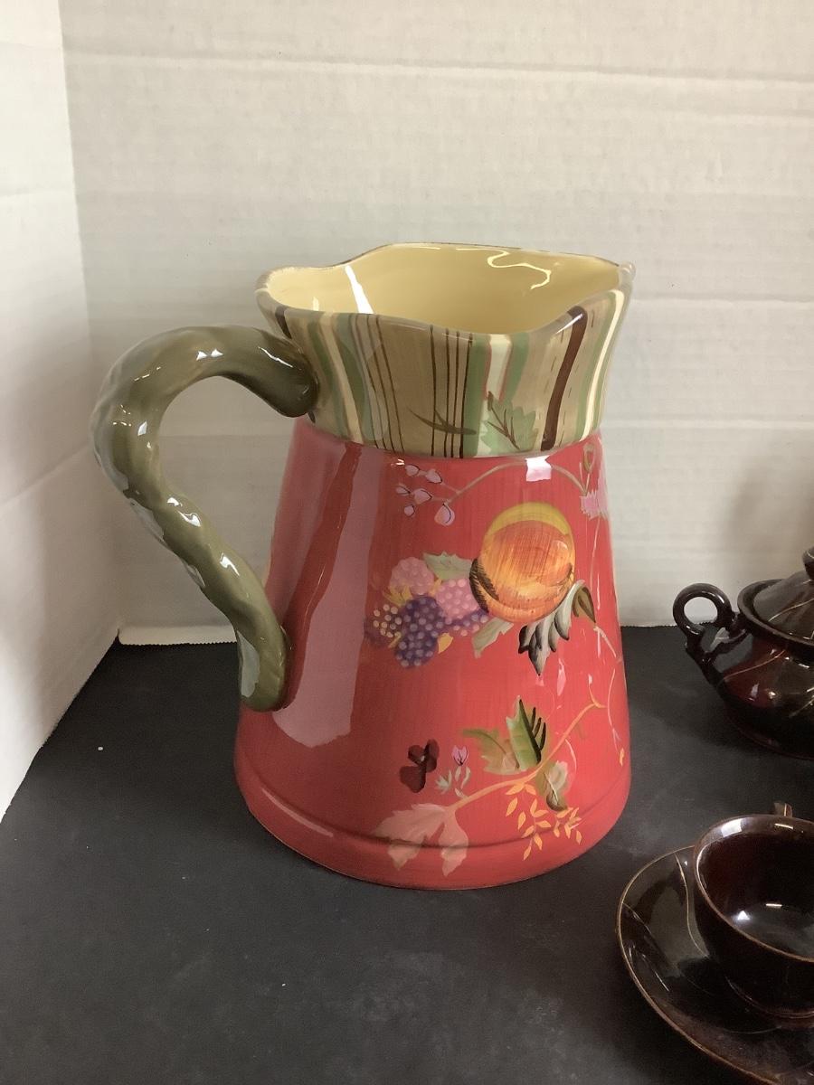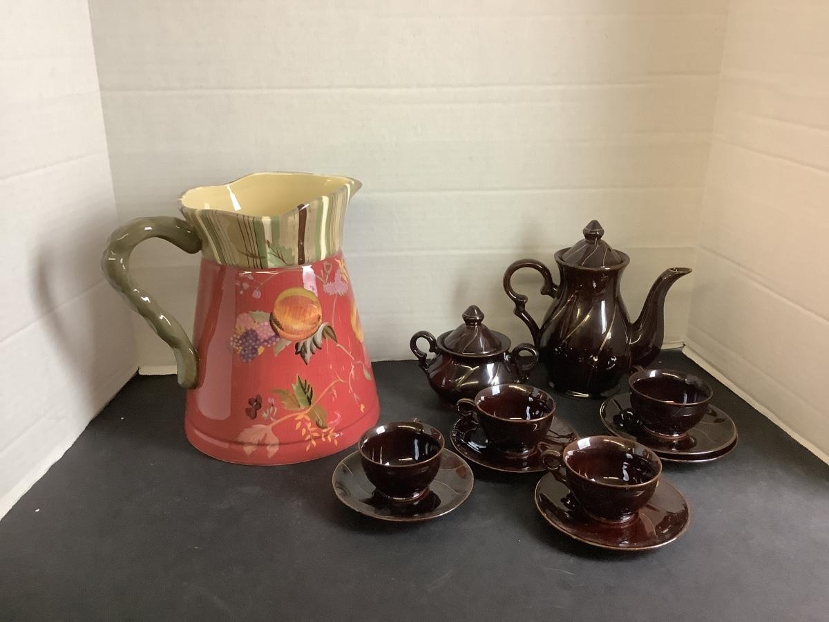 D - 728 Tracy Porter Pitcher & Brown Ceramic Tea Set