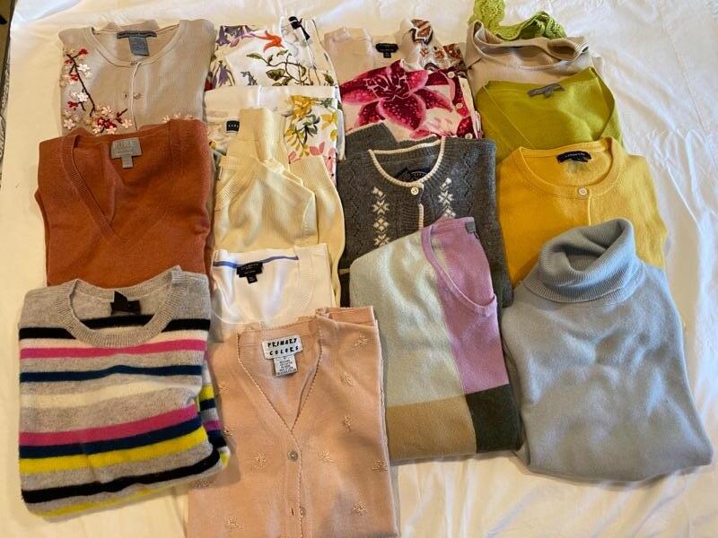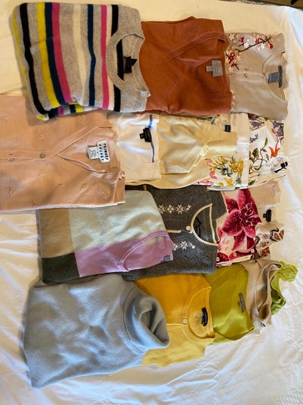Large Lot of Cashmere 7 Cotton Sweaters and Cardigans, sizes Small & Medium- such brands as Newman Marcus, Land’sEnd, Talbots, Ralph Lauren, Halogen