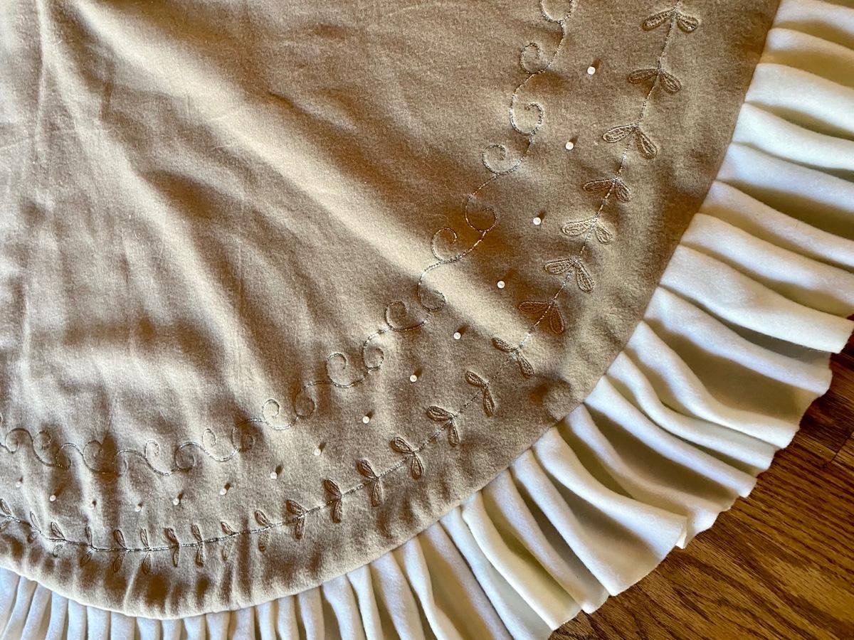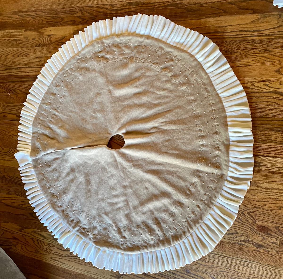 D & F Designs 52" Tan & Beige Winter White Pearls Felt Ruffle Christmas Tree Skirt - (Second one)