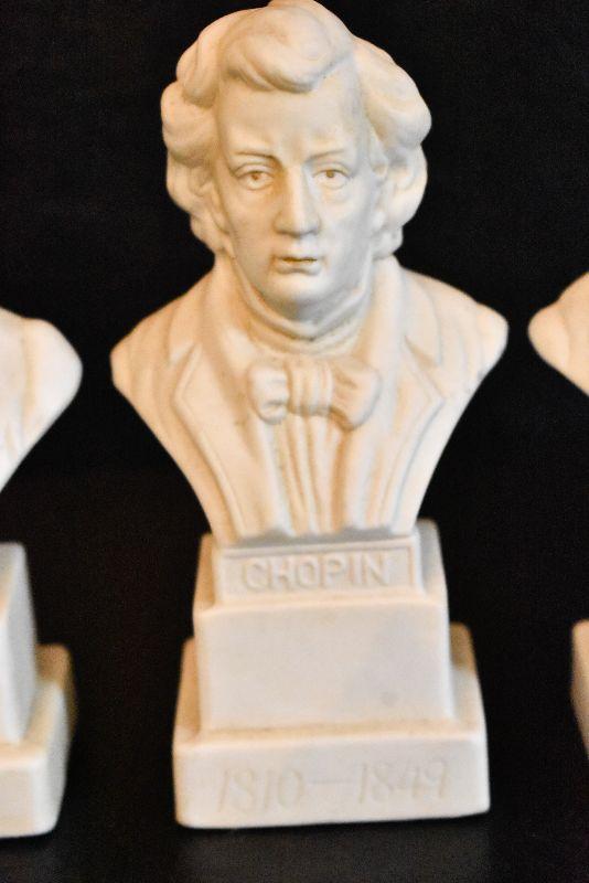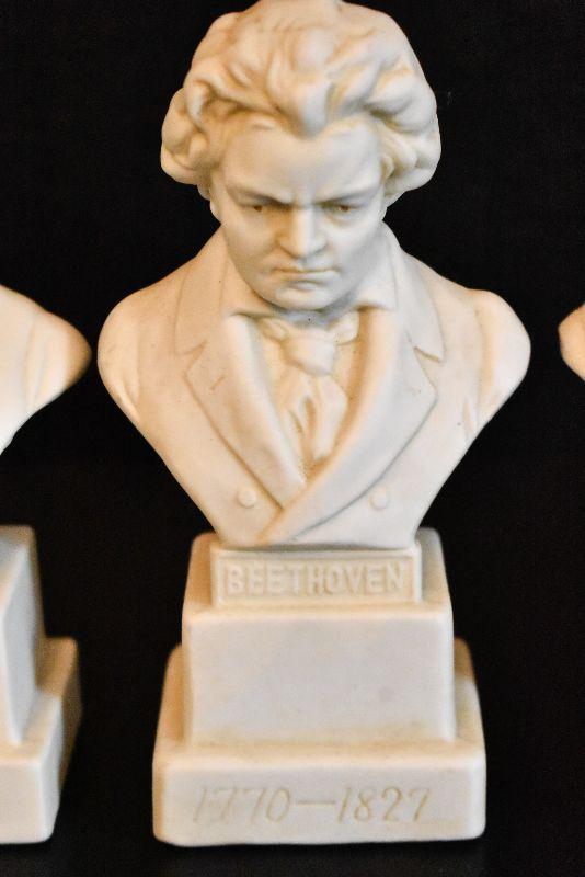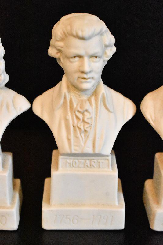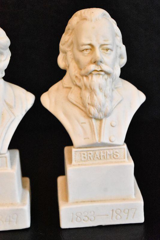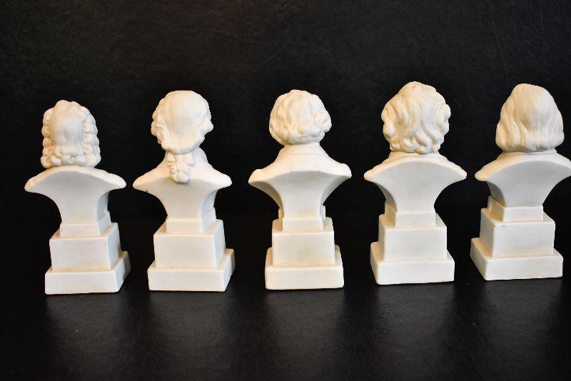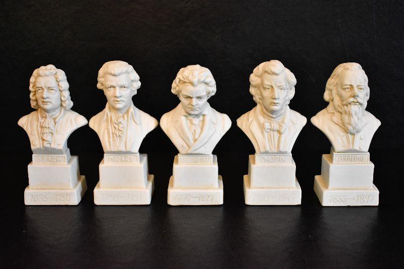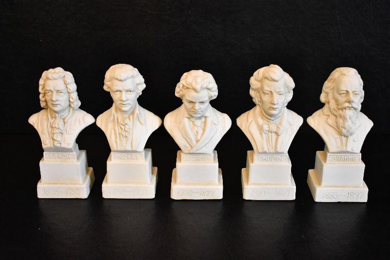 6" Busts of Bach, Mozart, Beethoven, Chopin, and Brahms. Herco, Japan.