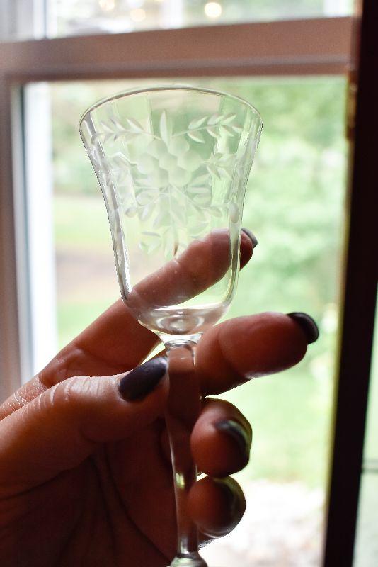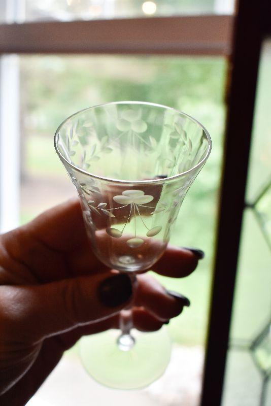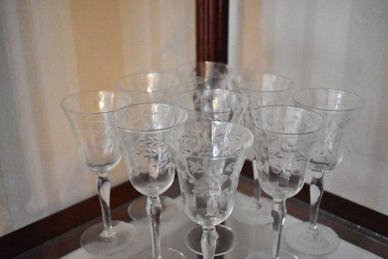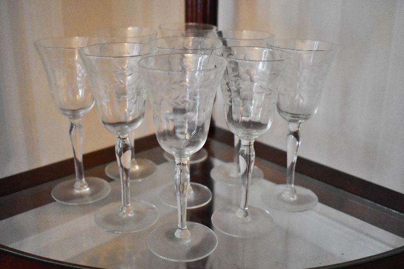 Set of Vintage Etched Wine Glasses