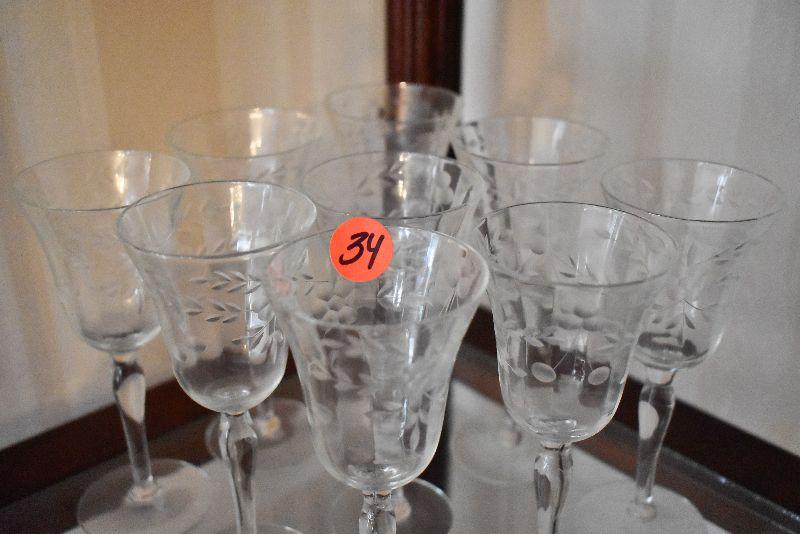 D Lot 34: Set of Vintage Etched Wine Glasses
