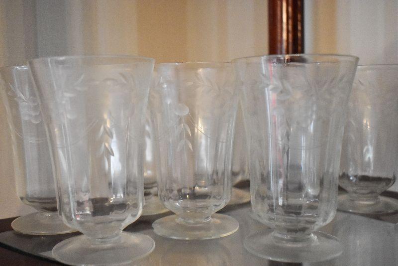 D Lot 35: Set of Vintage Etched Juice Glasses