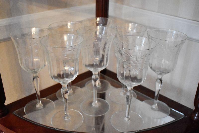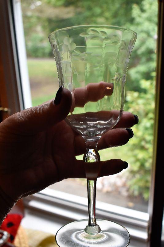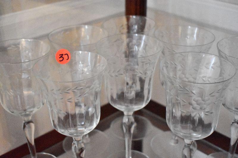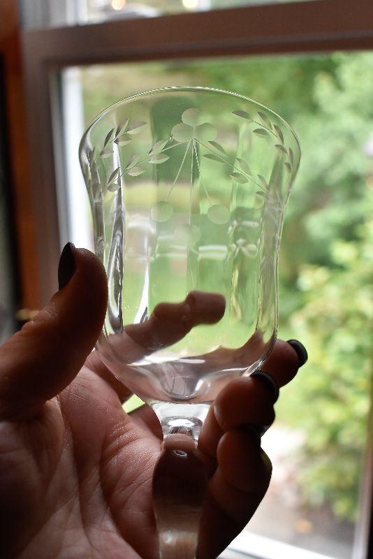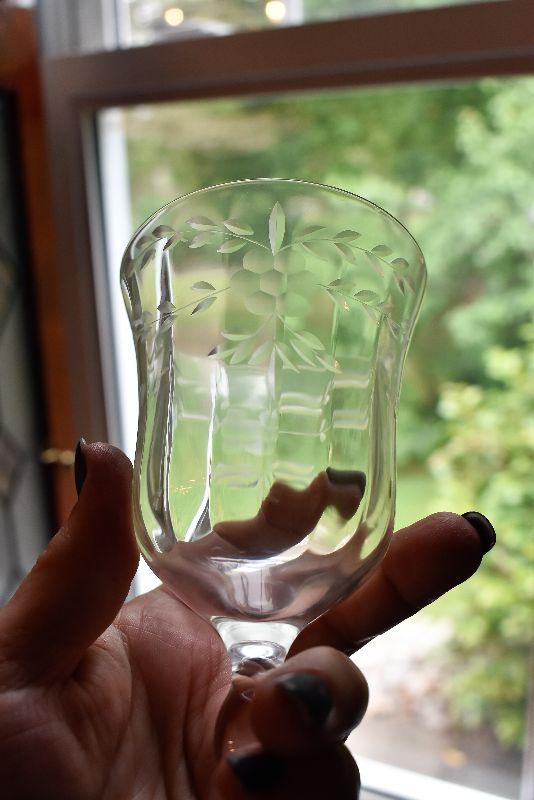 D Lot 37: Set of Vintage Etched Wine Glasses #2