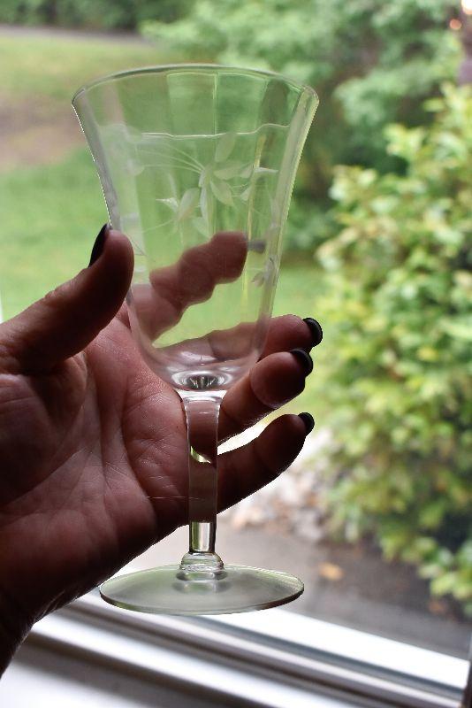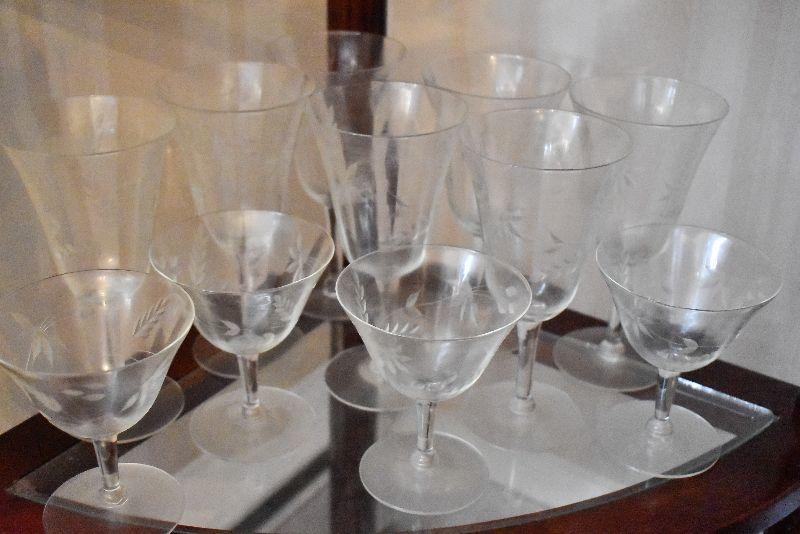 D Lot 38: Set of Vintage Etched Glasses In 2 Sizes
