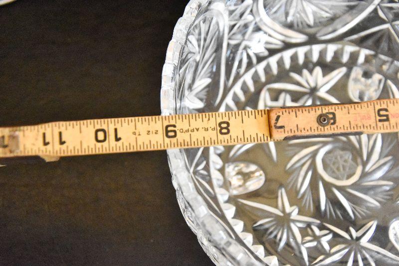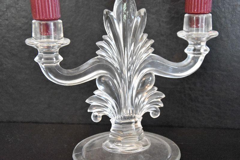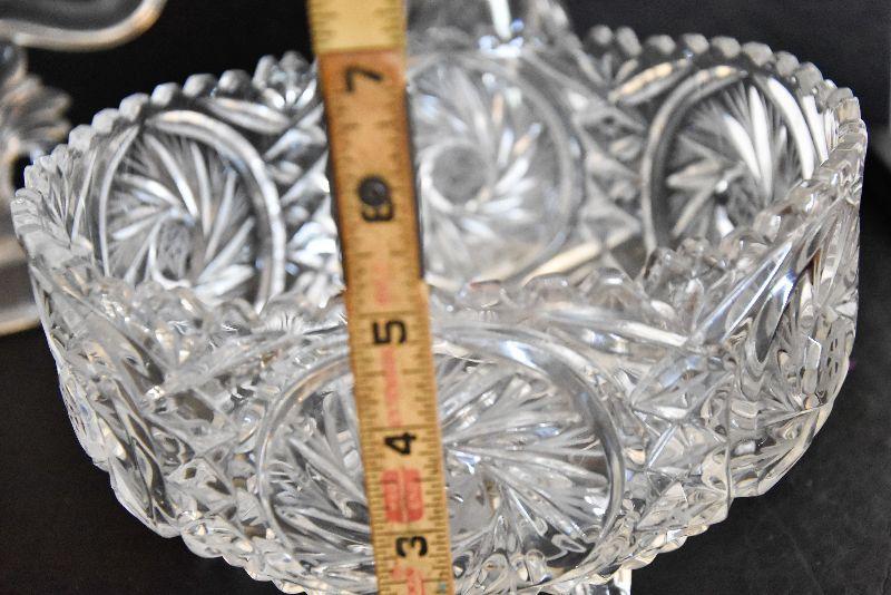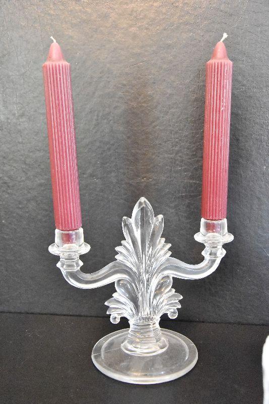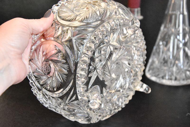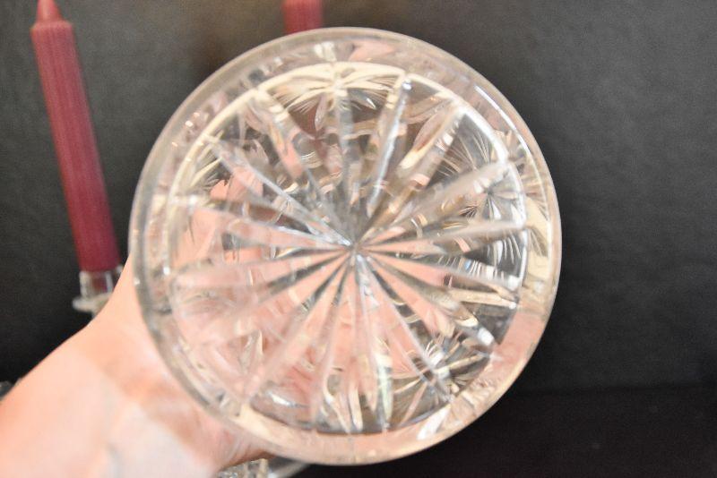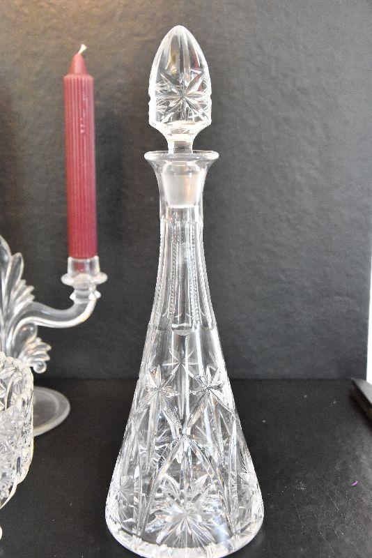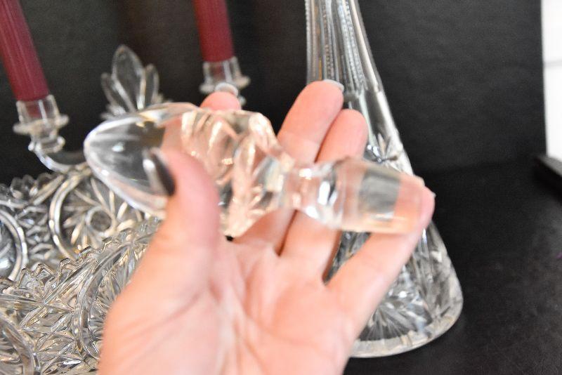 D Lot 46: Vintage Footed Glass Bowl, Decanter, and Candlestick