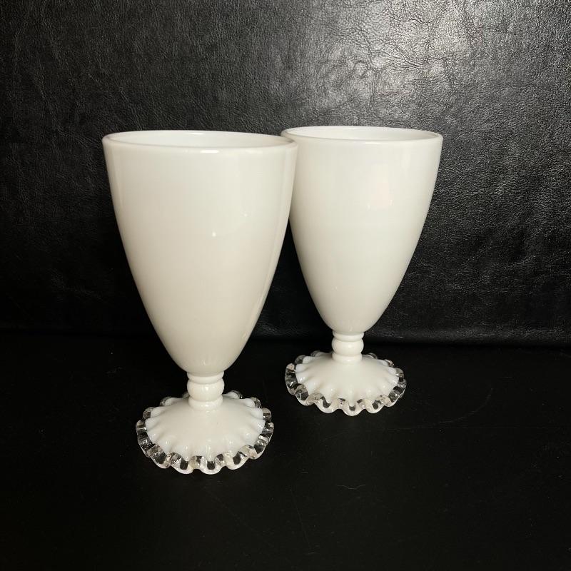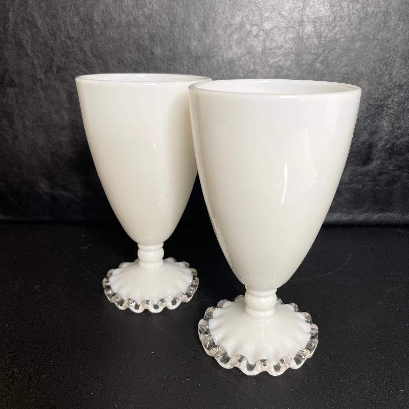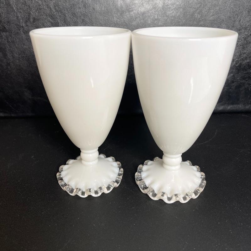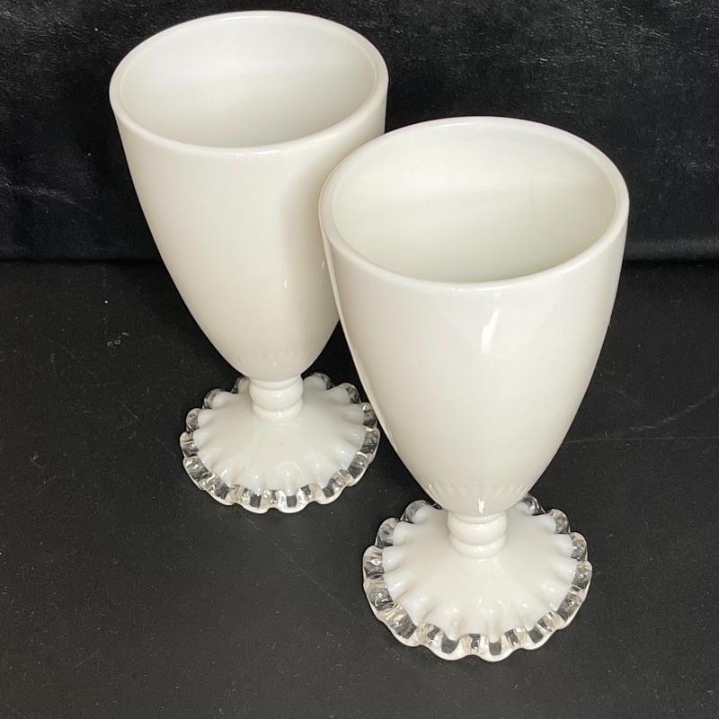 D- Pair of White Silver Crest Fenton Footed Tumblers
