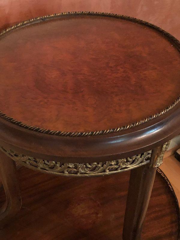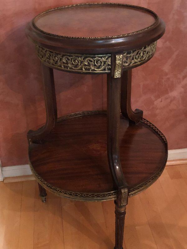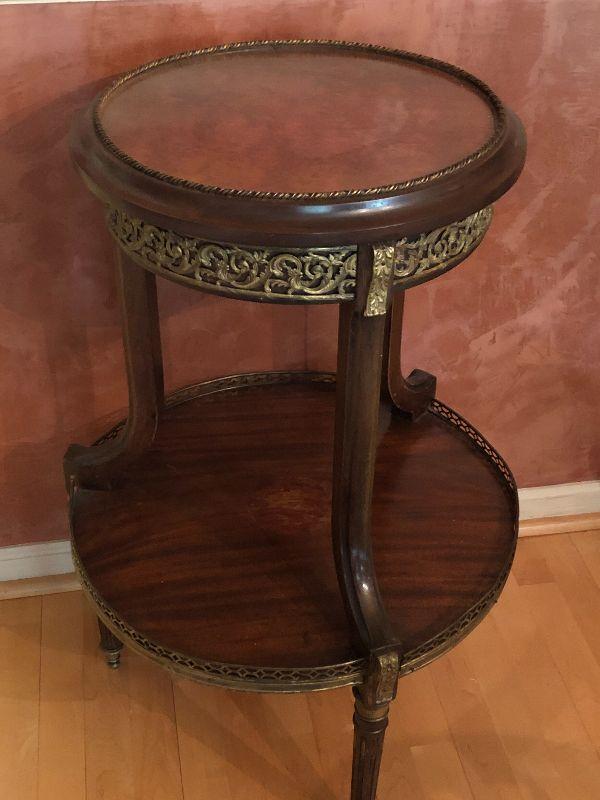 D1: Antique French Three Leg Etagere with Brass Finishes