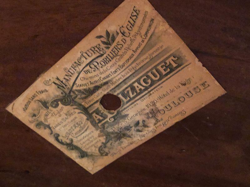 Beautiful antique etagere with brass relief. Makers tag attached translates to Manufacturers of church furniture. . 32"h x 21"w