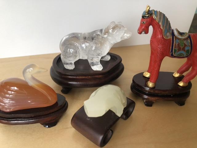 Clear quartz, jade, and Amber quartz carved animals. Please see all pictures for exact contents of the lot, condition of the items, and if measurements if taken. Thank you for looking and have fun bidding.