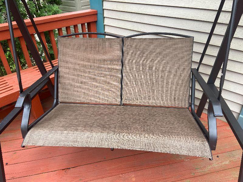 Very nice porch swing. You will need someone to help you move. Please see all pics for what is included in this lot, the condition of the items in the lot, and sizes of items if measurements taken. Thank you for looking and have fun bidding.