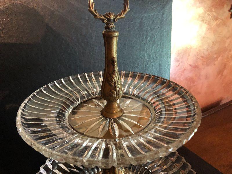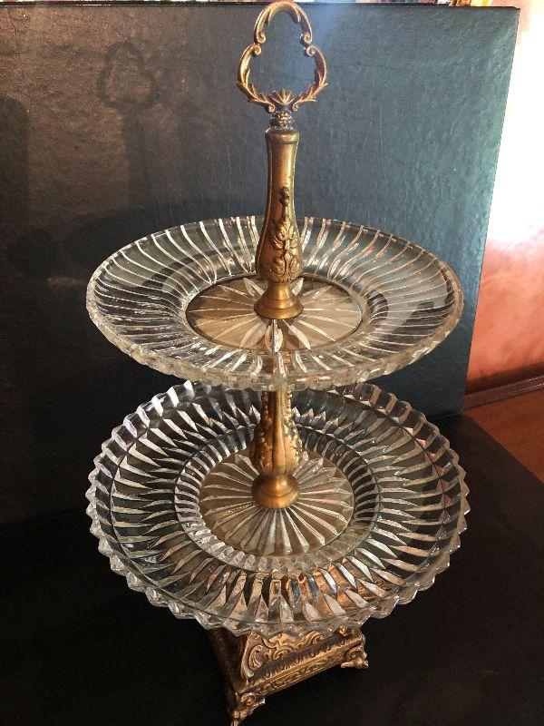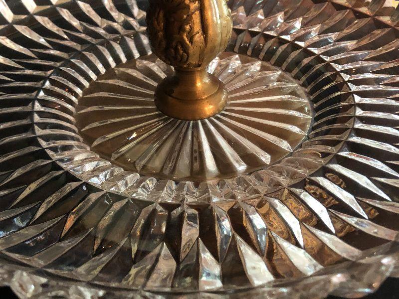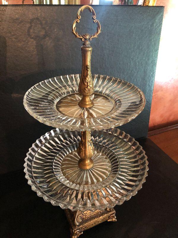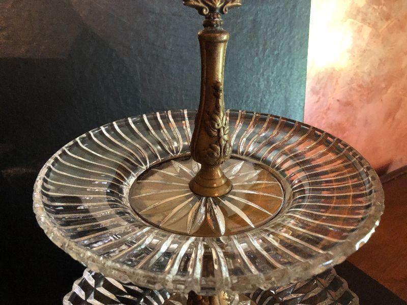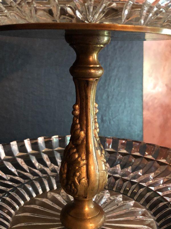 D10: Tidbit/Cake Tiered Brass and Cut Glass Pedestaled Server
