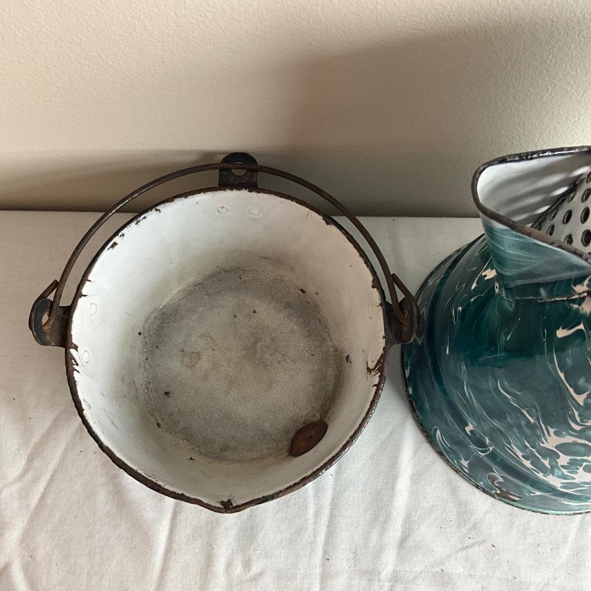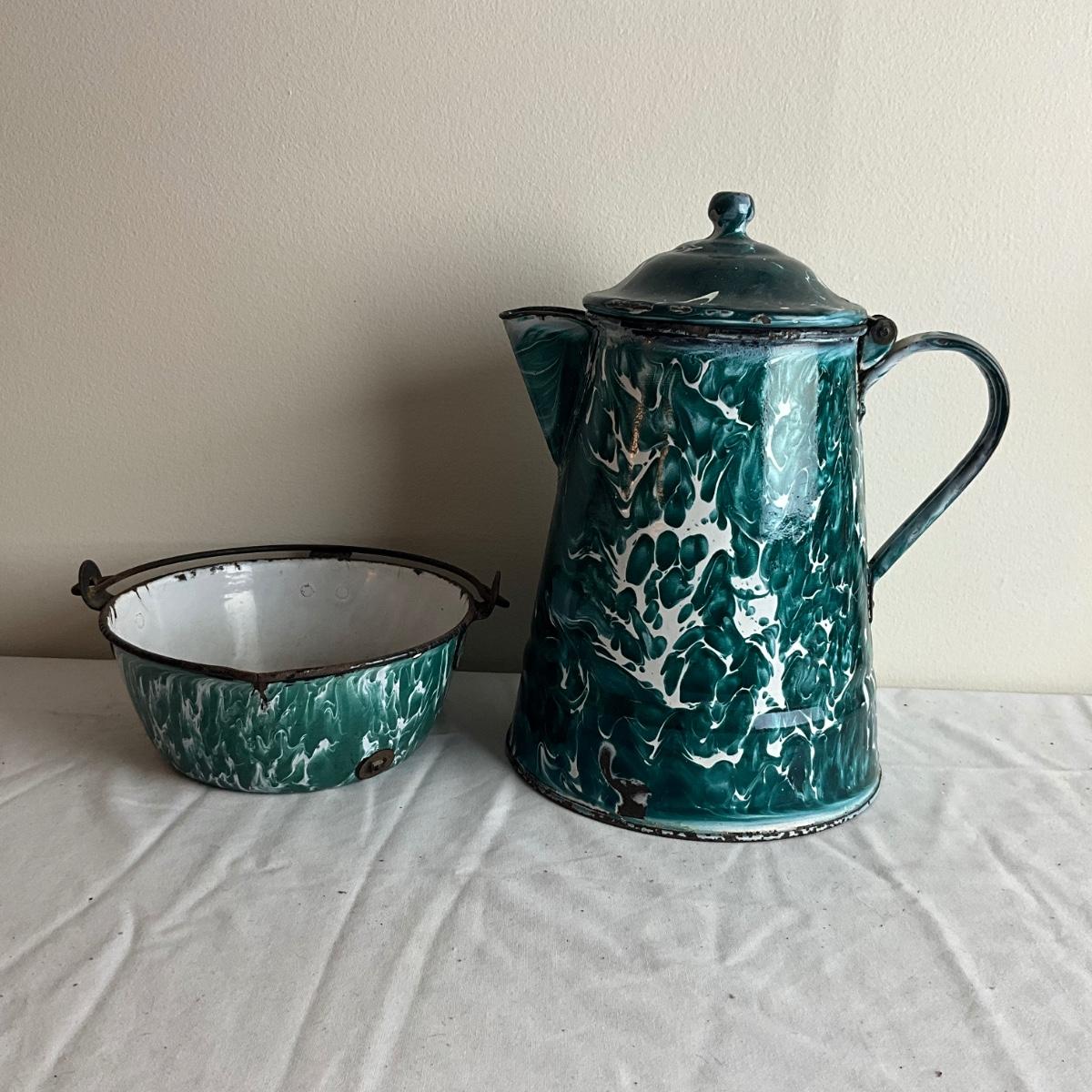 D1000 Antique Crysolite Green Swirl Graniteware Coffee Boiler and Pail