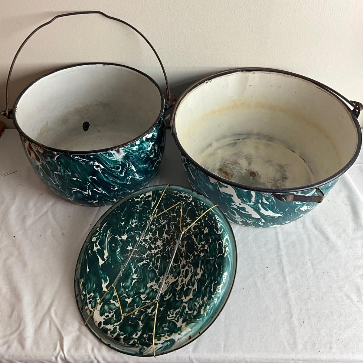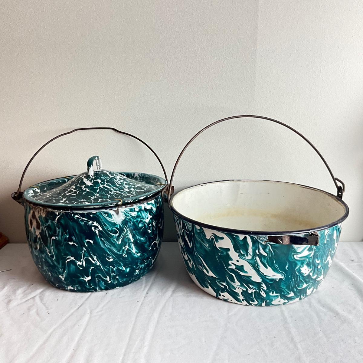 D1002 Antique Crysolite Green Swirl Graniteware Pots