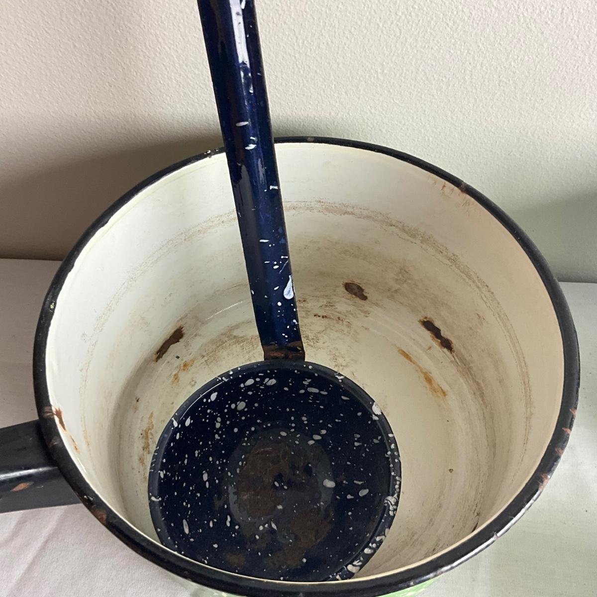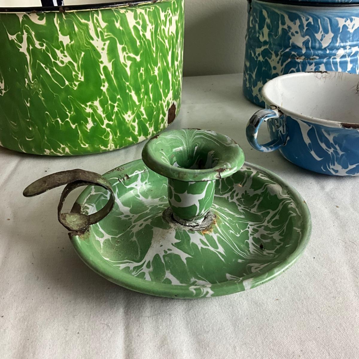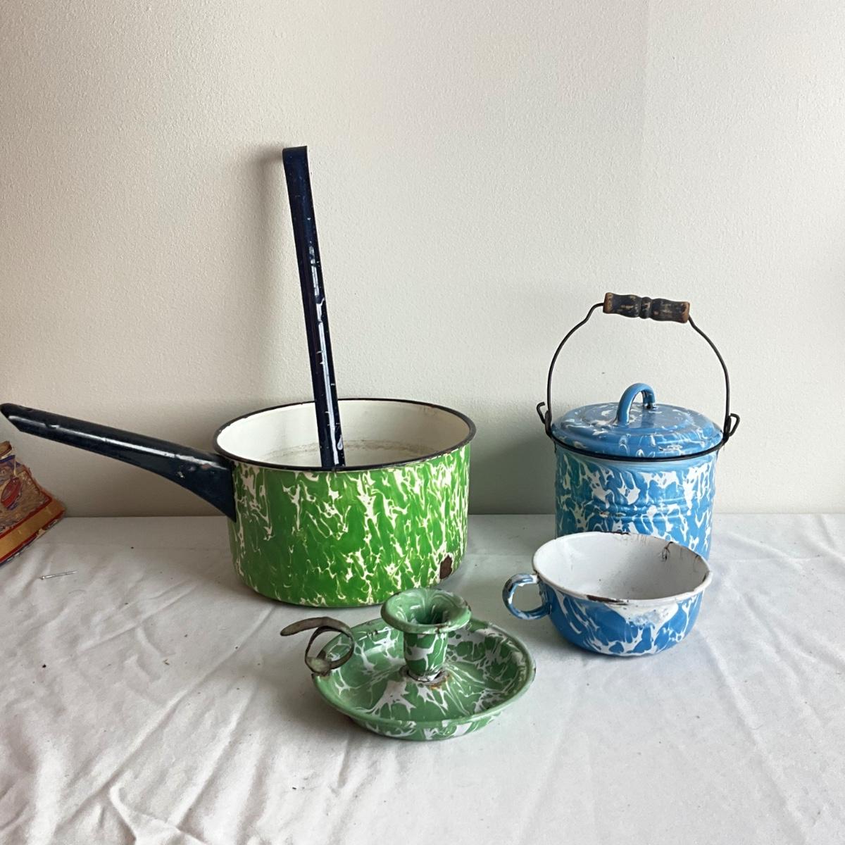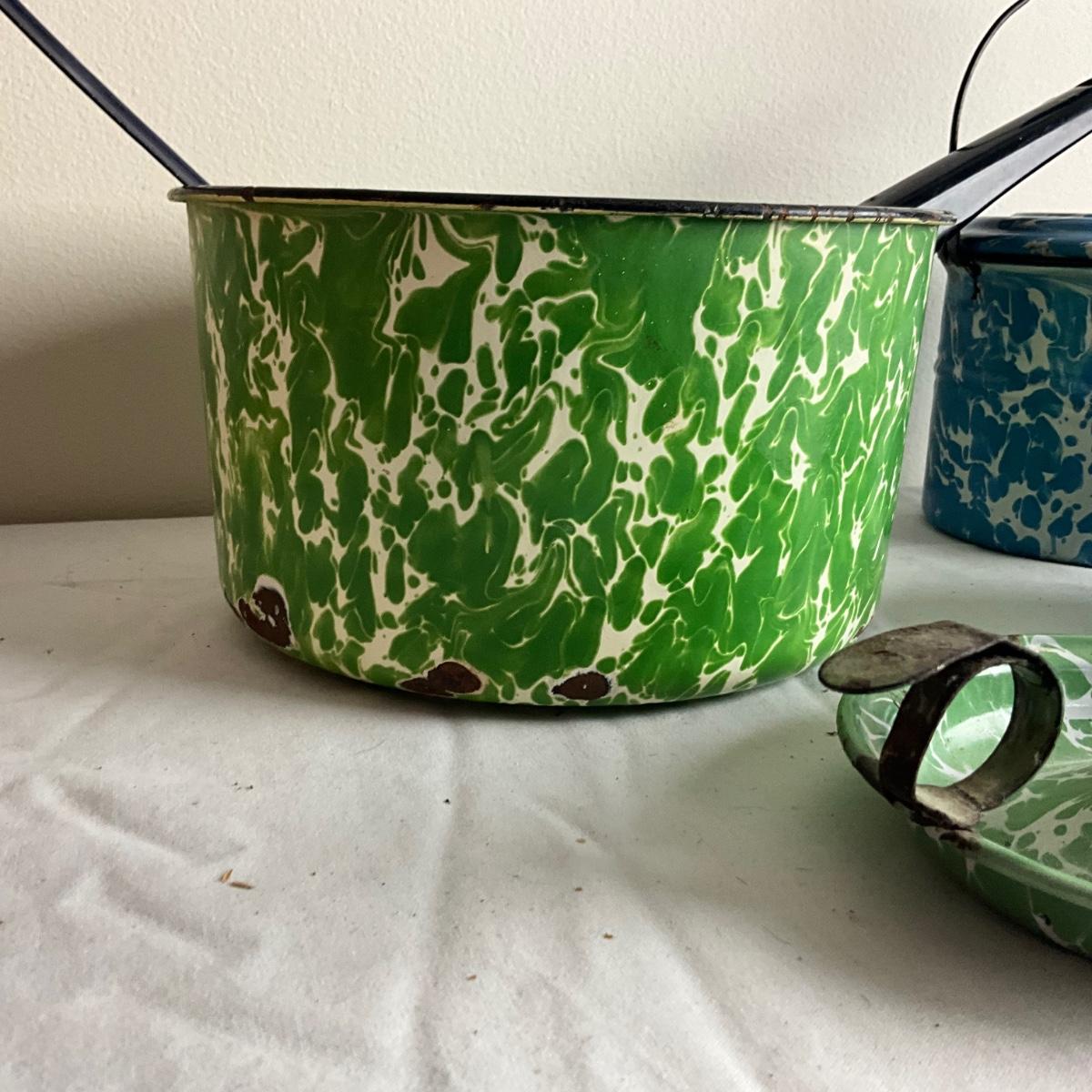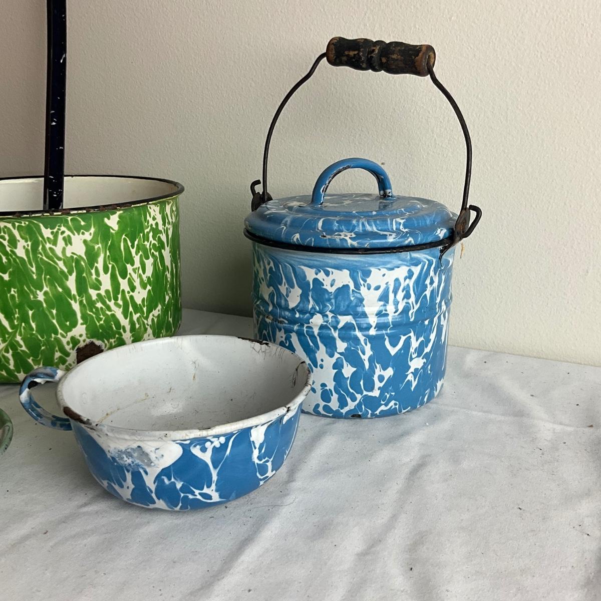D1003 Lot of Mixed Blue, Green & White Swirl Graniteware Pieces