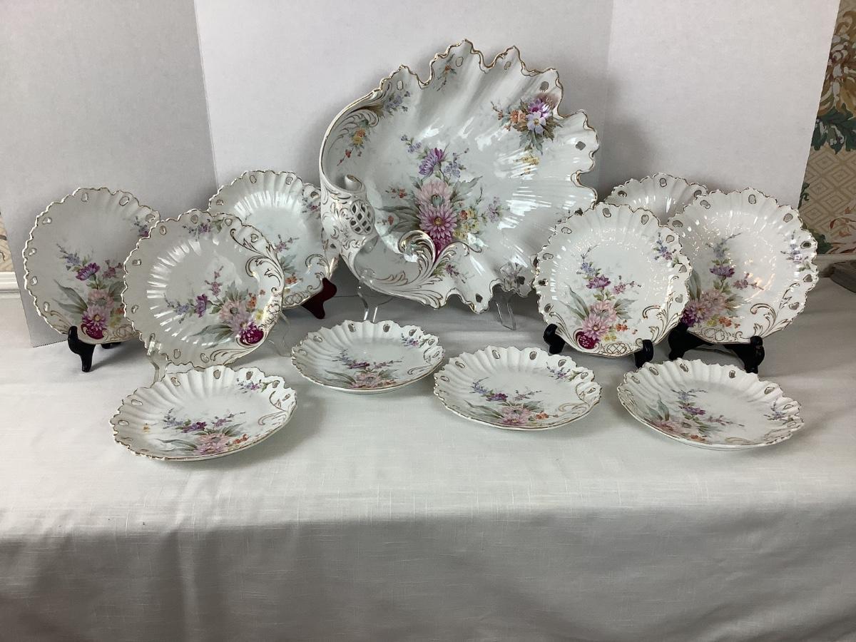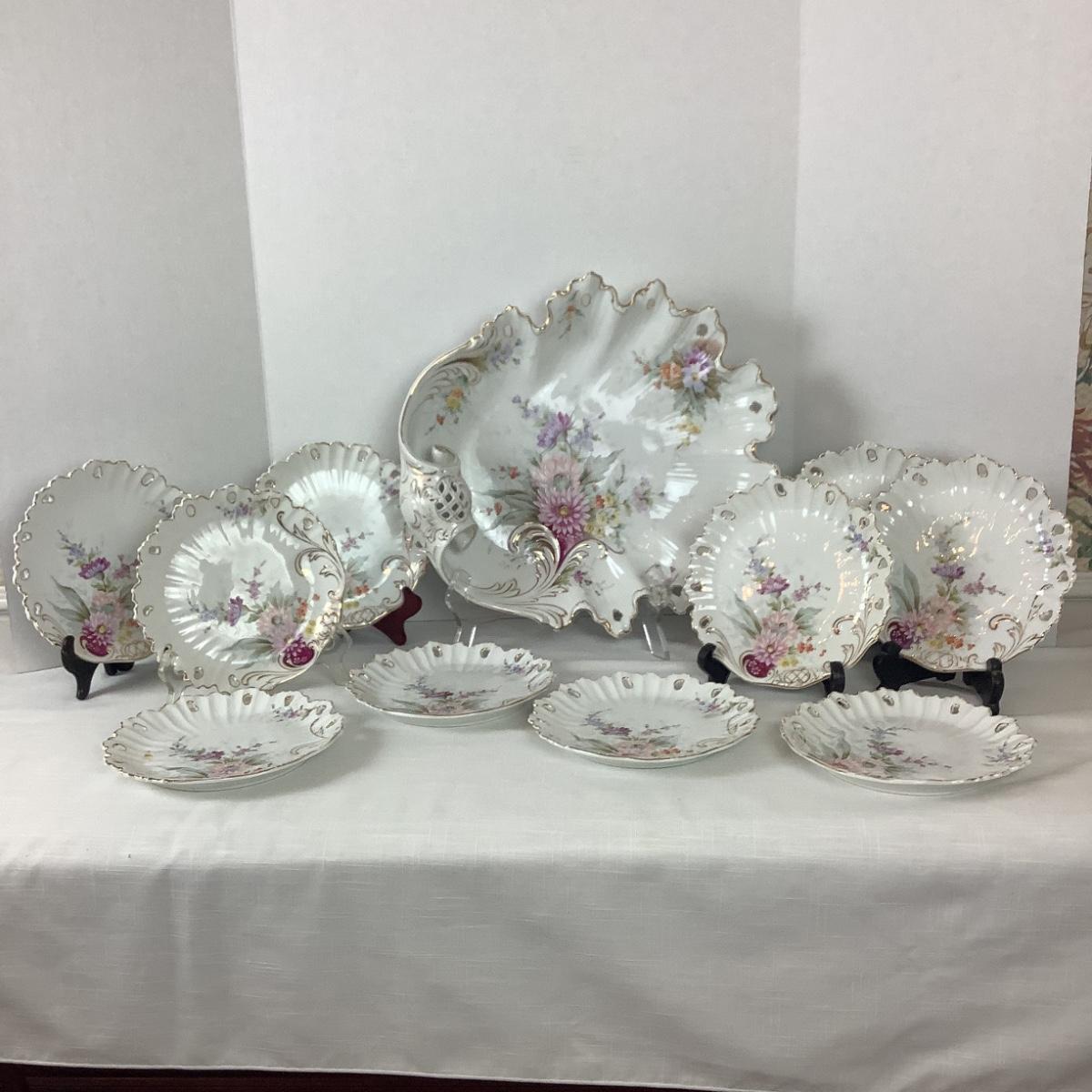 D1007 Antique Handpainted Porcelain 11pc Serving Set