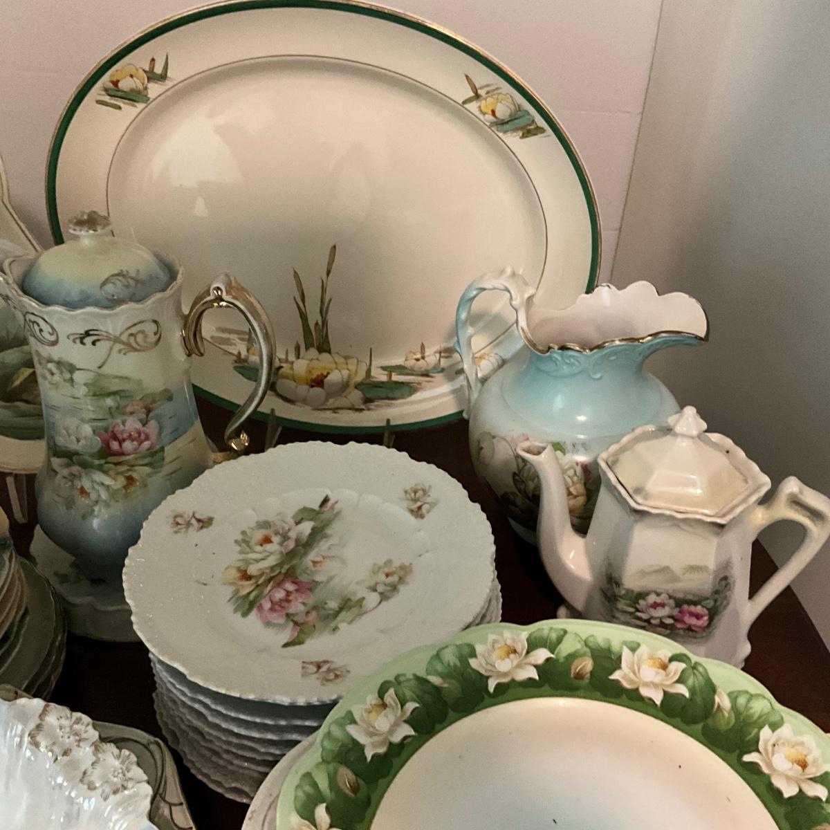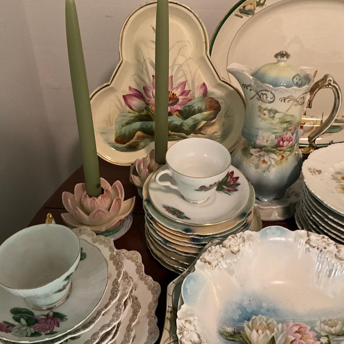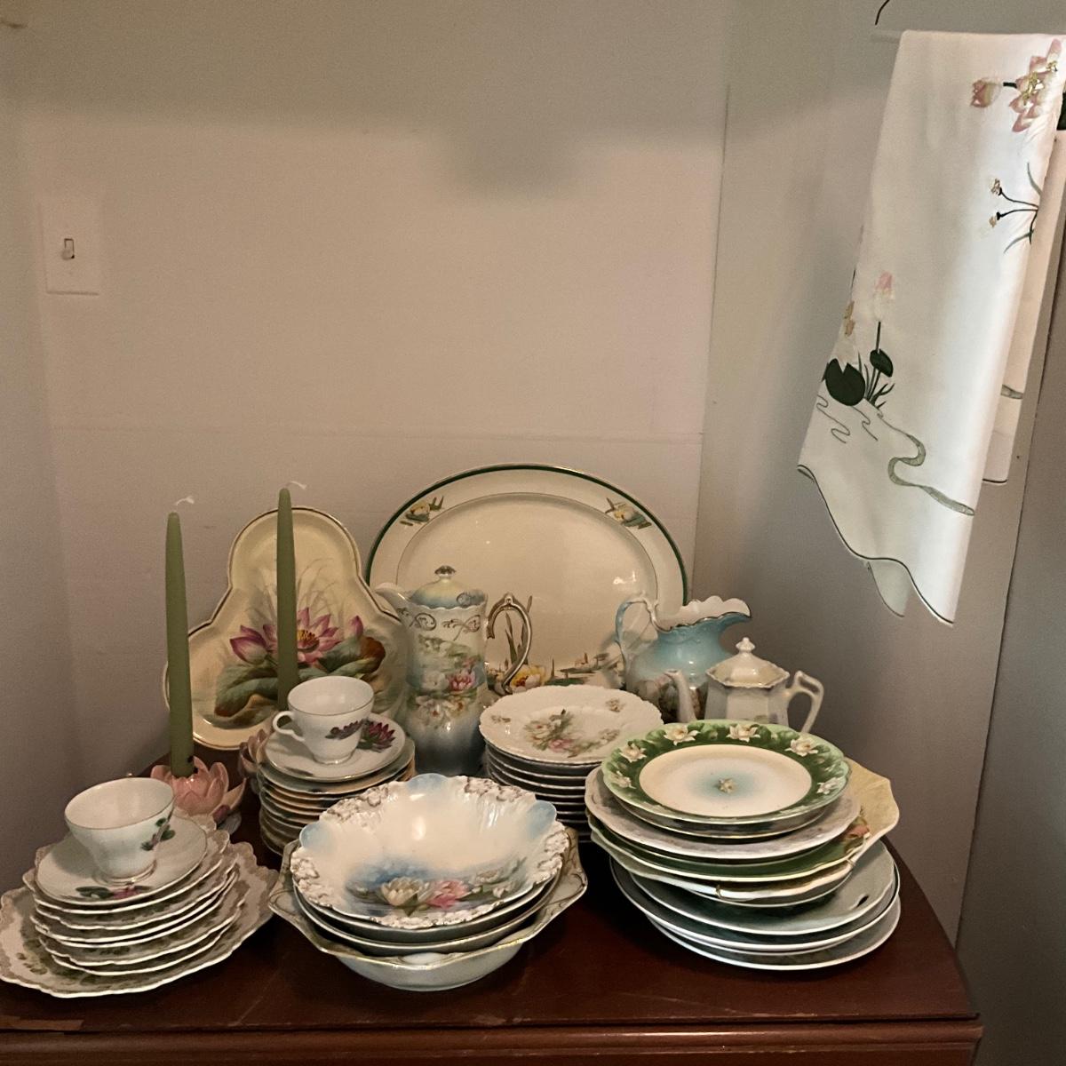 Teapots, bowls, plates, cups and saucers, table linen and more