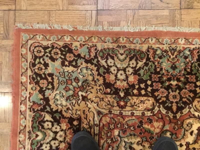 Vintage Persian rug 92” long by 66” wide. 50 to 100 years old, machine made.