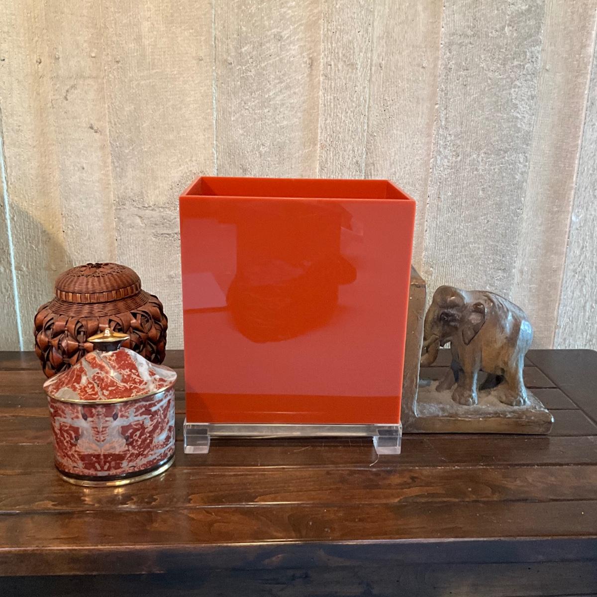 D1032 Mid Century Lucite Waste Bin with Elephant Bookend and Decorative's