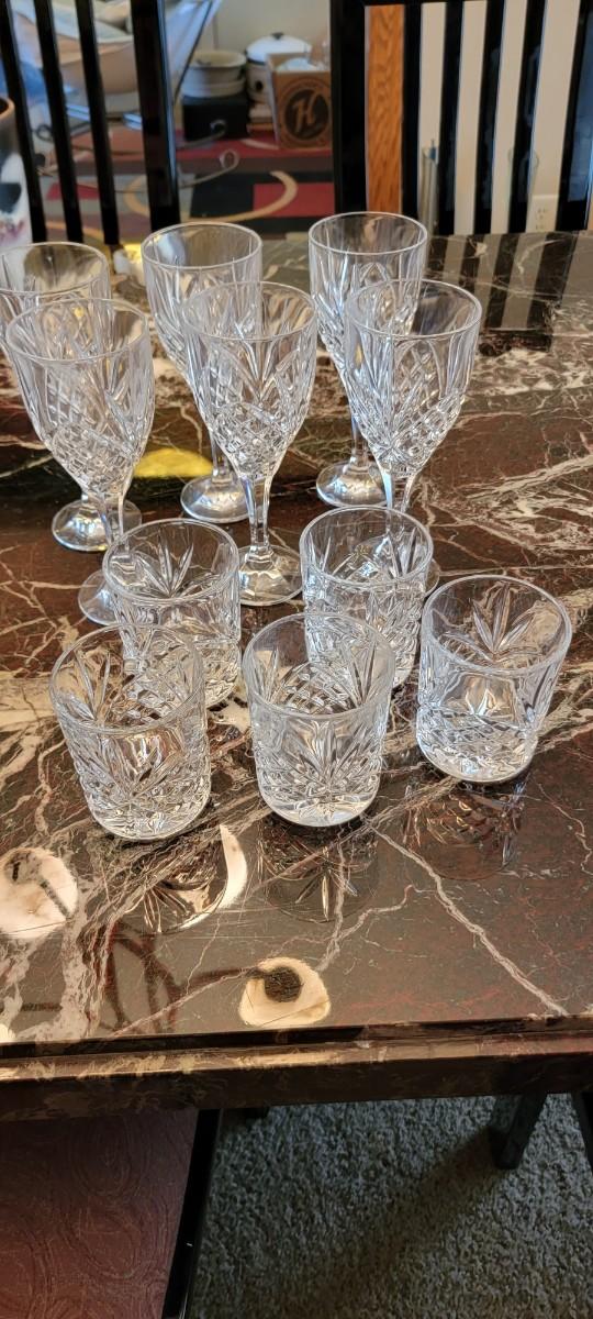 D-11 set of six Godinger crystal wine stems, set of five Godinger crystal old fashioned