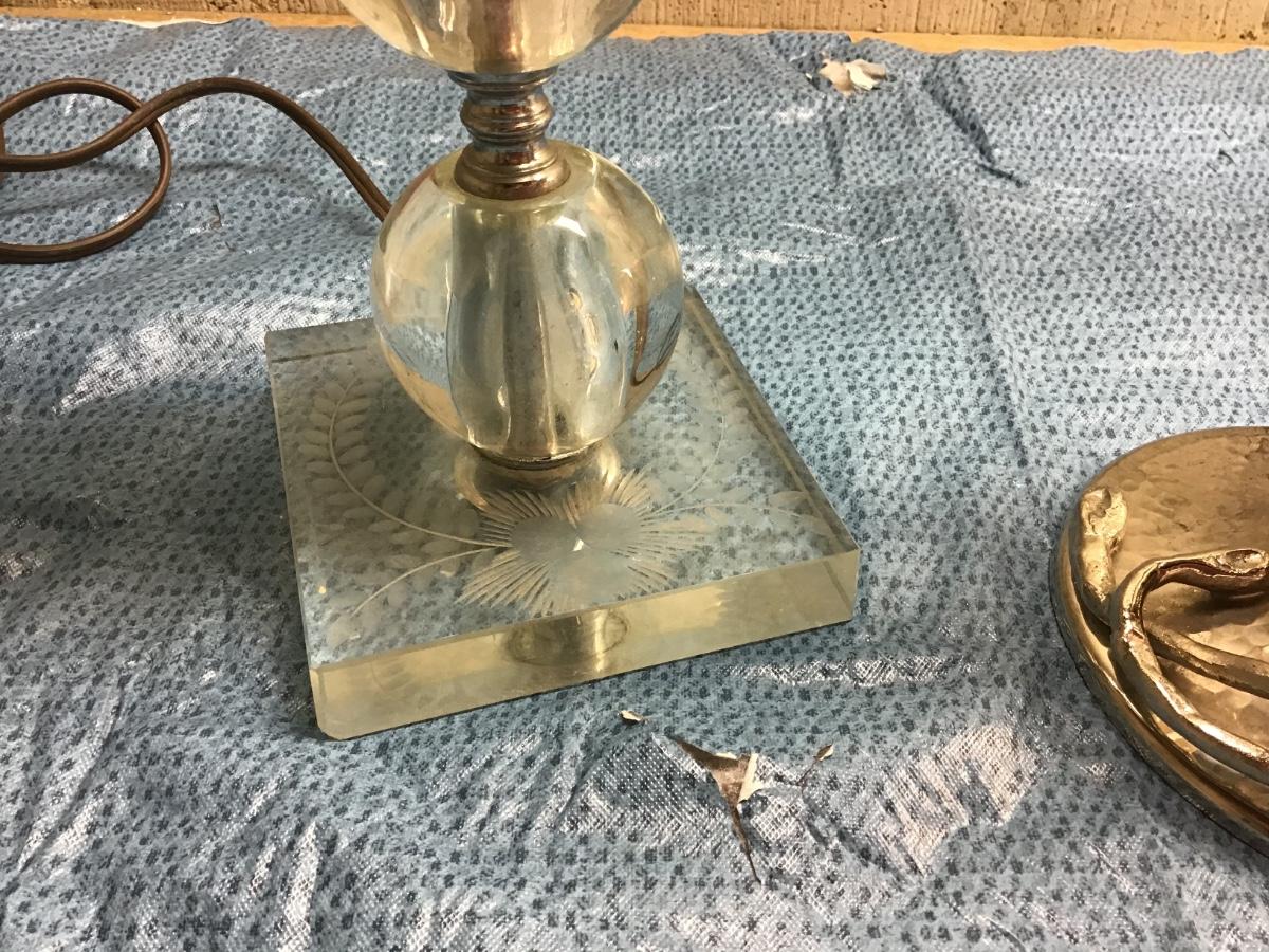 D1102 - 2 Vintage Glass Lamps & Candle Holder