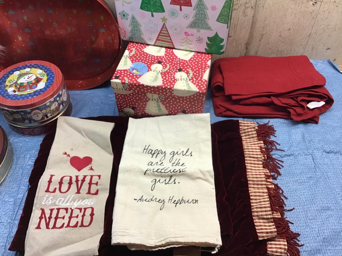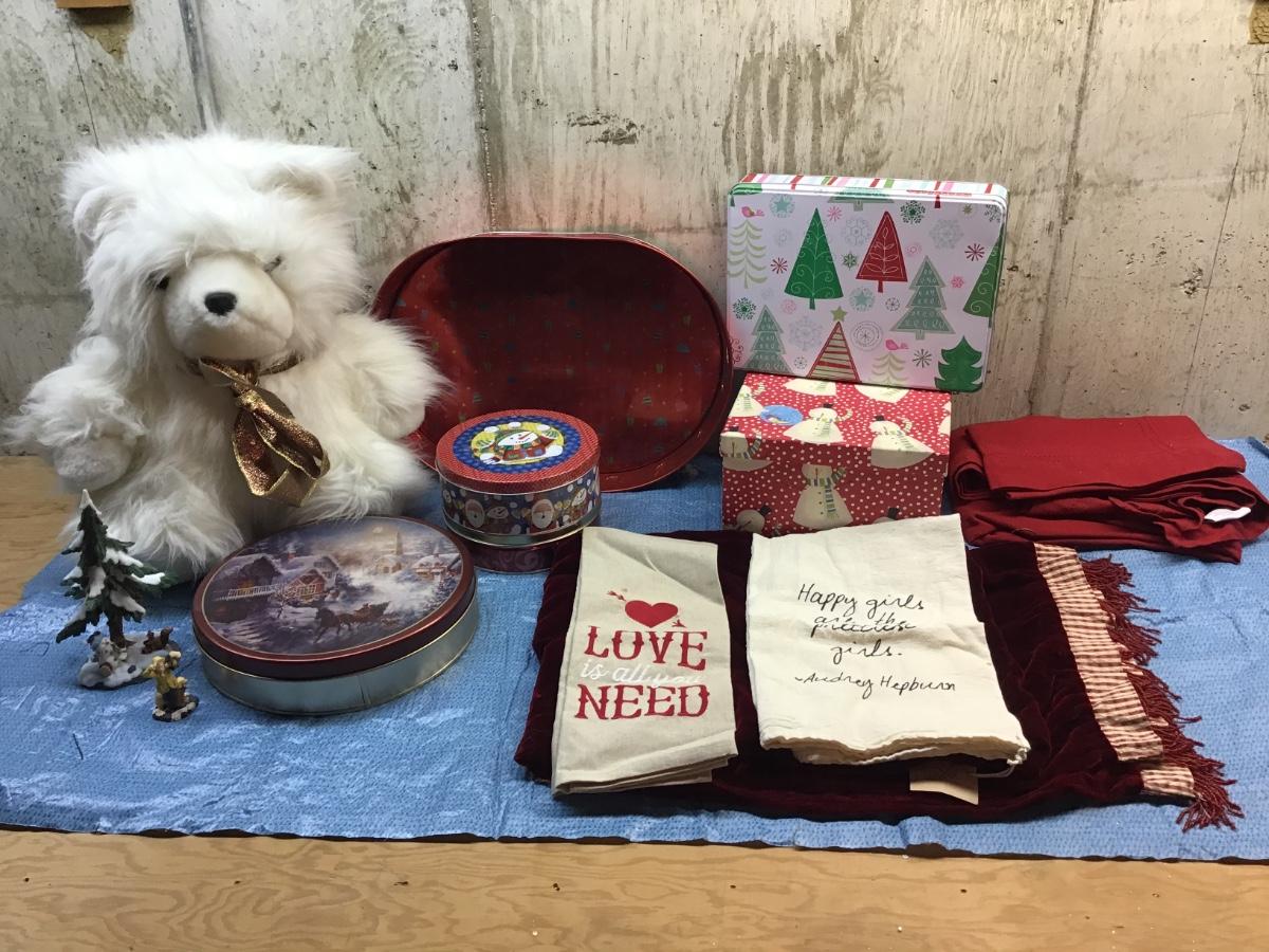 D1117 - Christmas Lot (Bear, Runner, Towels, Tins)