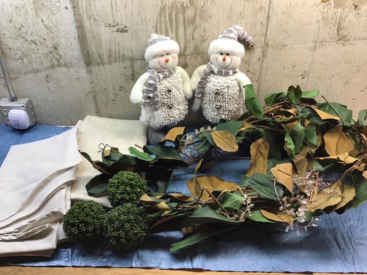 D113 - Christmas Lot (2 tablecloths, snowmen, greenery)