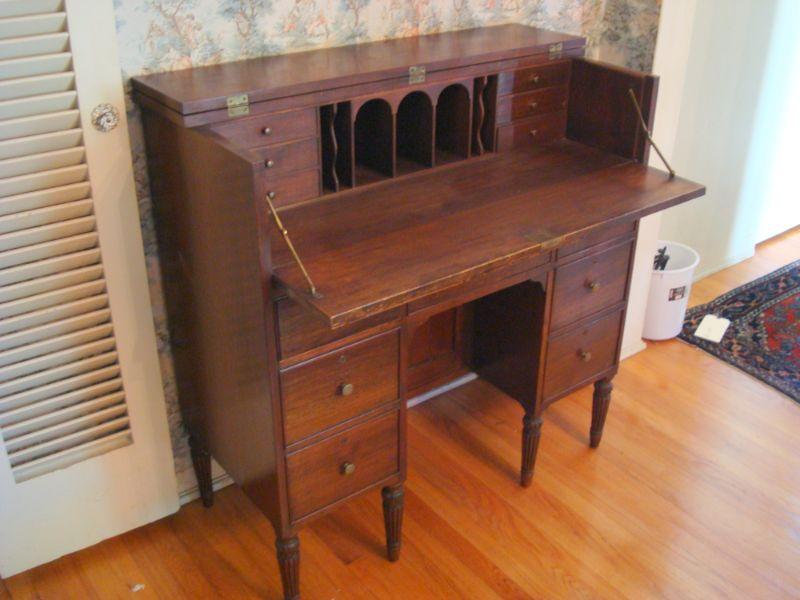 D115 - Antique Wood Secretarial Desk with Drop Leaf Front