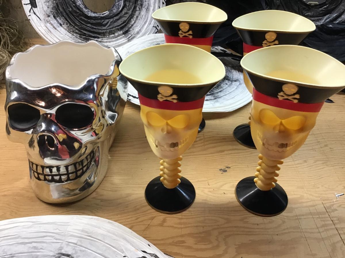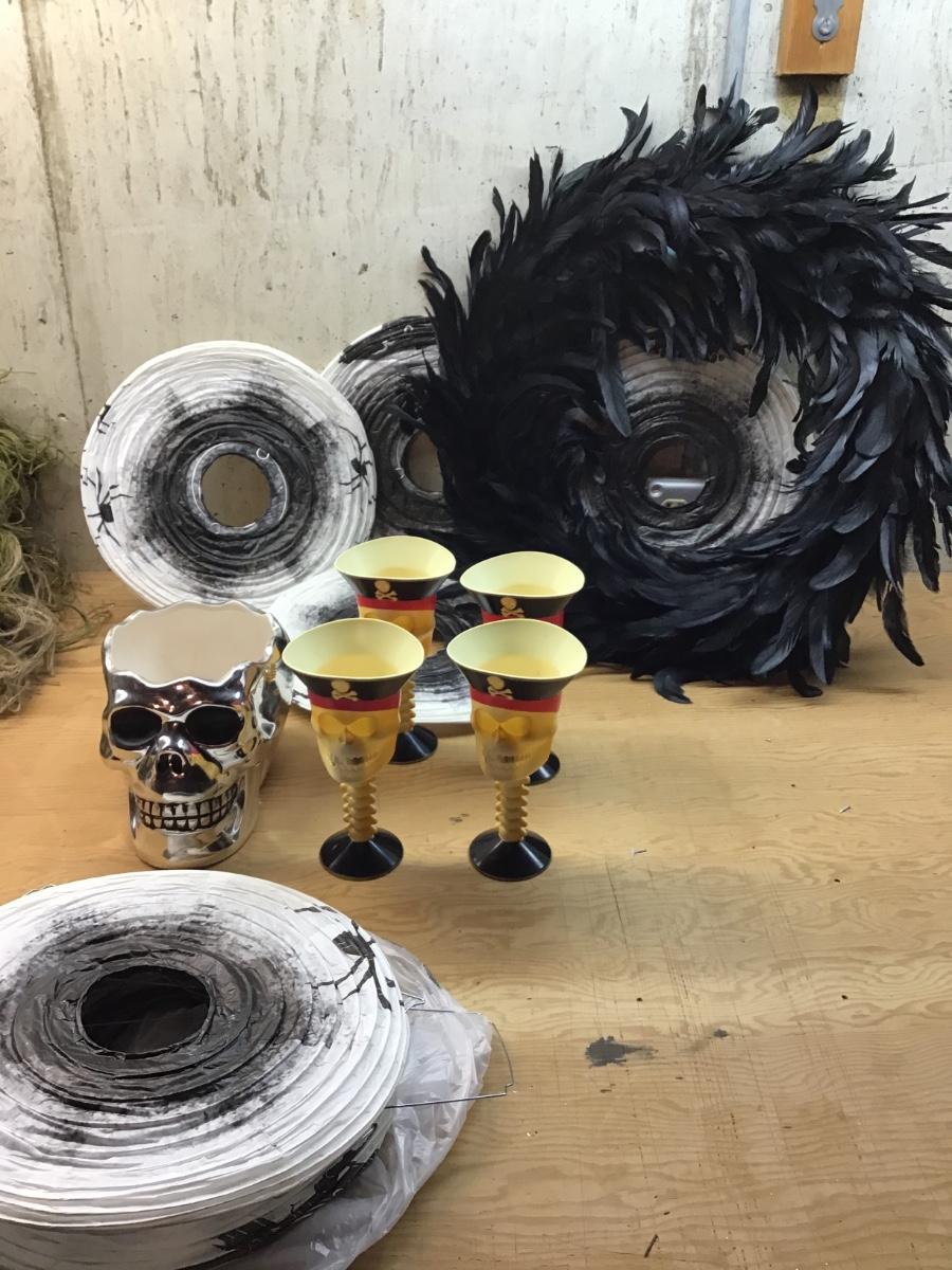 D1159 - Feather Wreath, Silver Skull, Pirate Glasses, Paper Lanterns