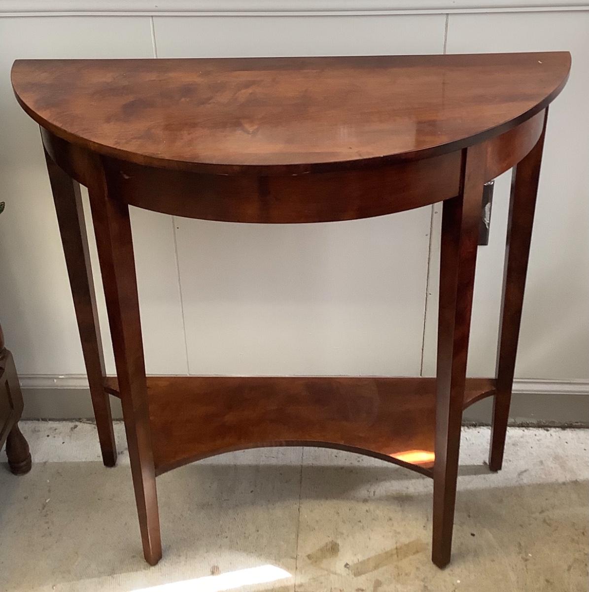 Demilune Table in excellent condition measuring 28-1/2” high 28” wide and 12” deep