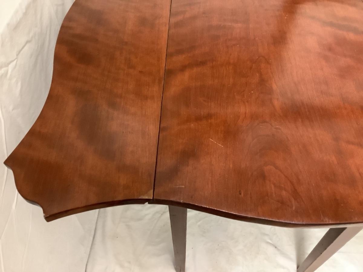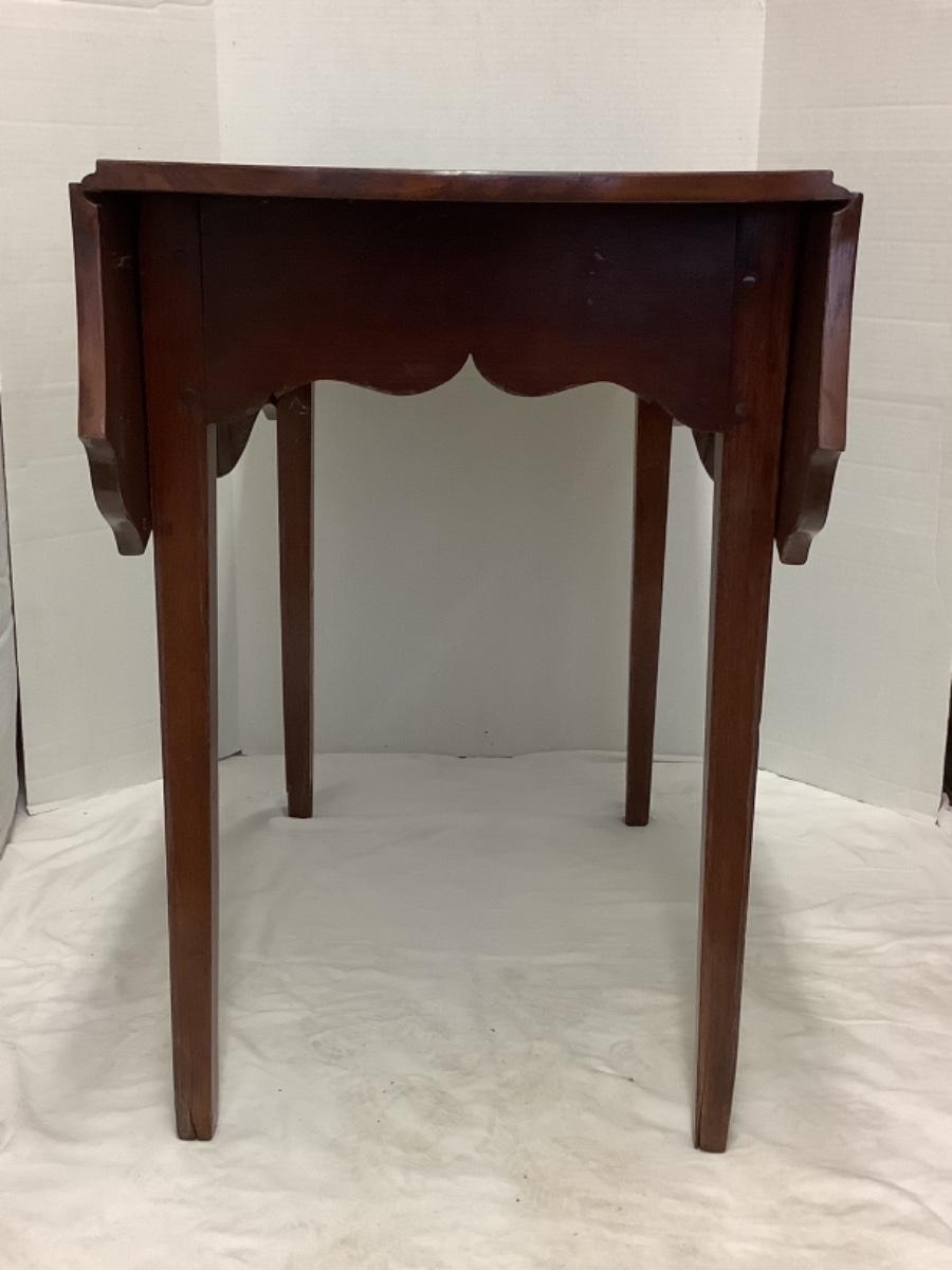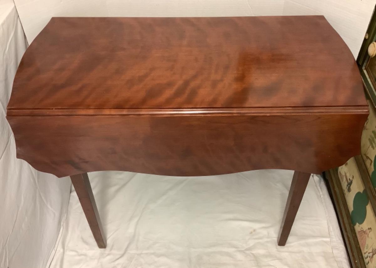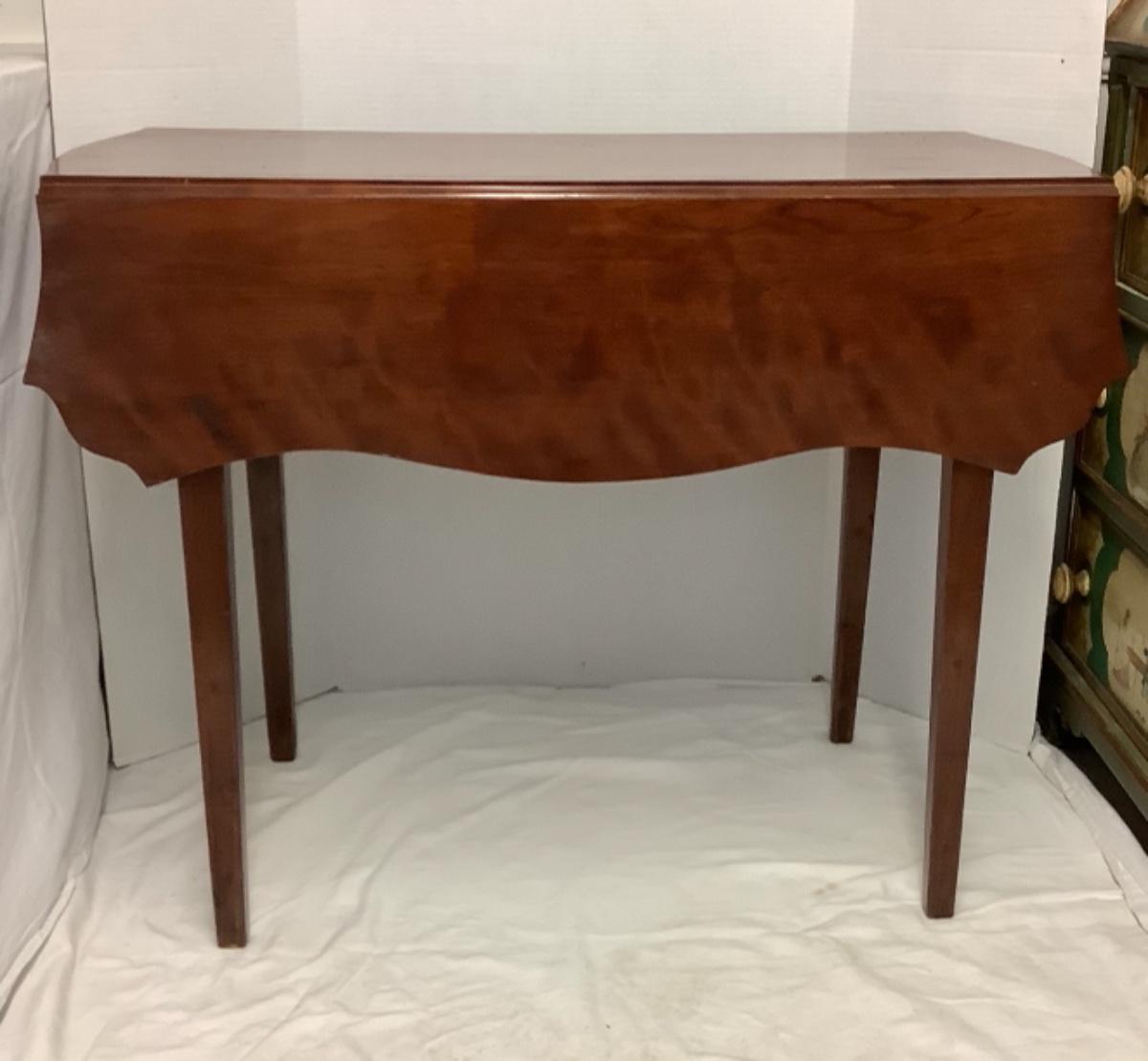 Antique drop leaf table measuring 28” high 36” long 18-1/2” wide with leaves down and 36” wide with leaves up, some very minor scratches on the top (see photos)