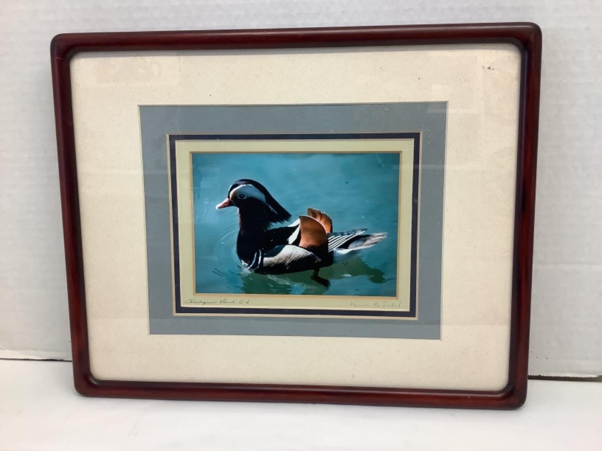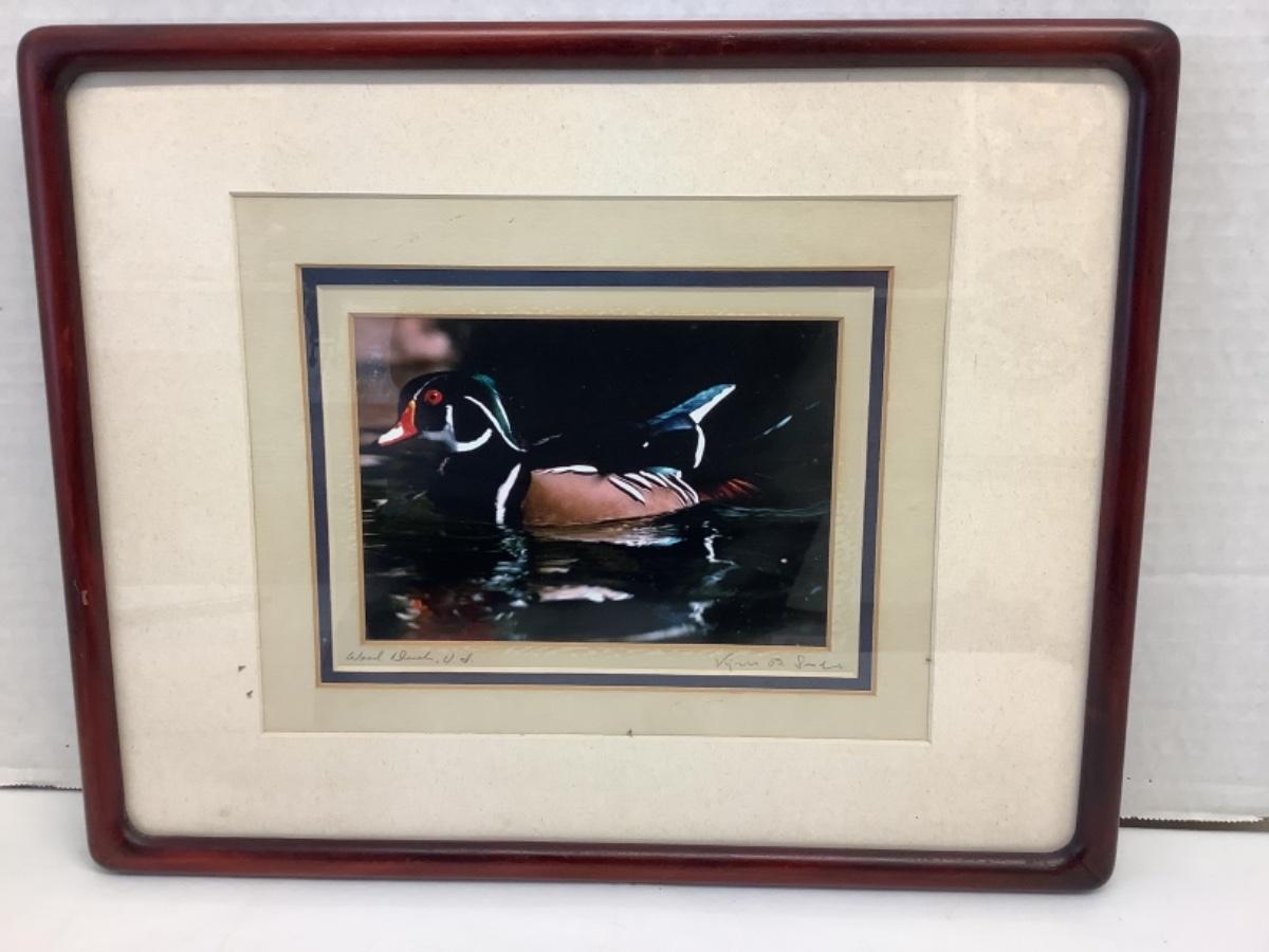 Framed Harlequin Duck and Wood Duck photographs, both photos are signed by photographer (see photos), both frames measure 15” x 12”