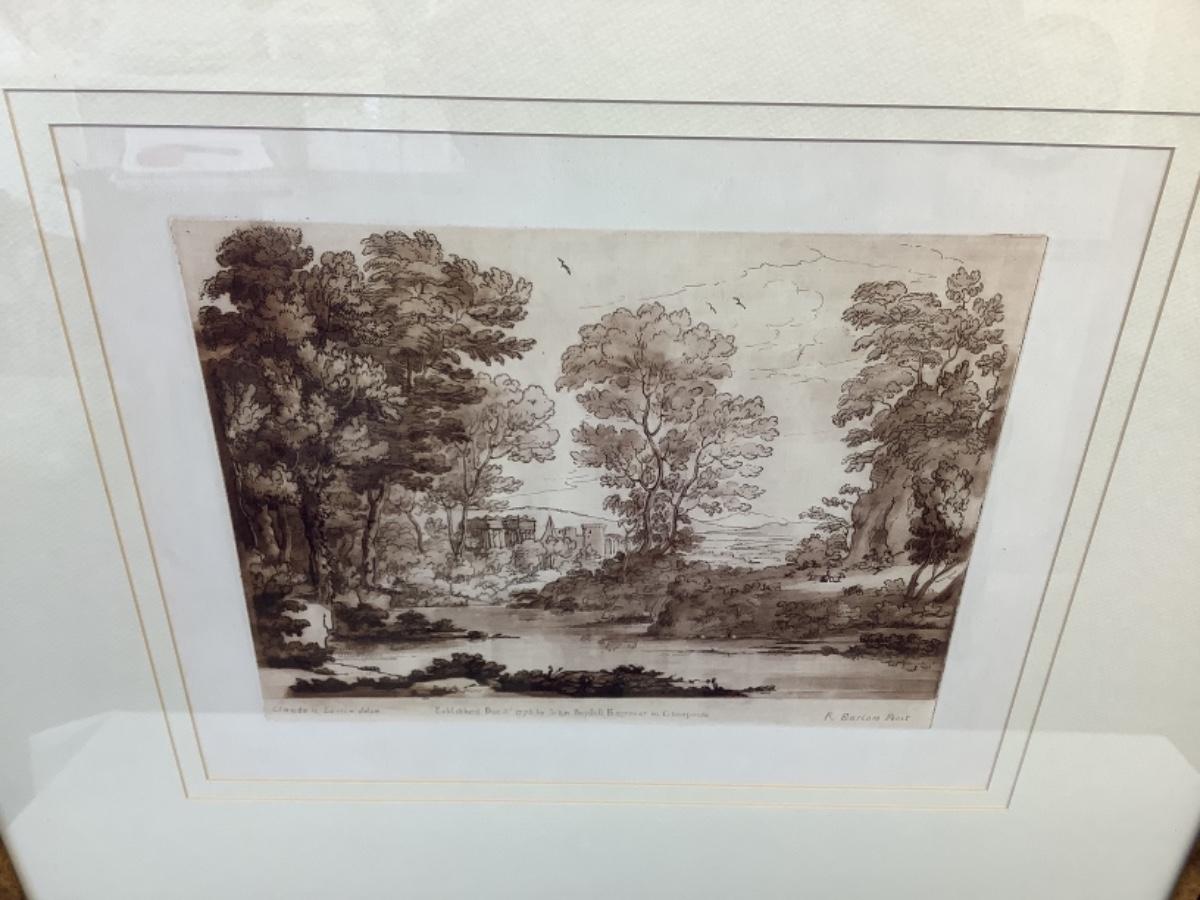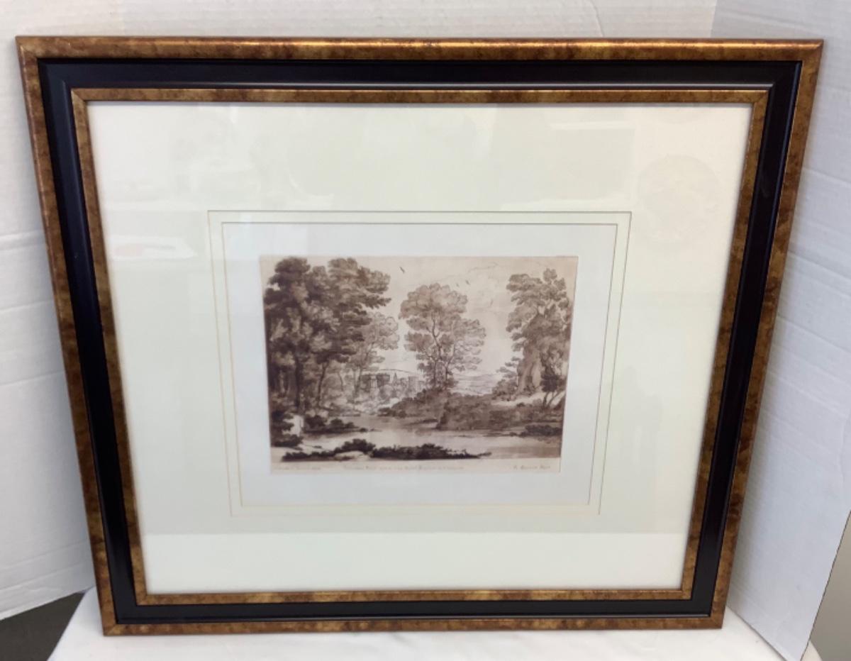 D1187 Framed R. Earlom Fecit; Claude Lorrain Sepia Mezzotint Engraving