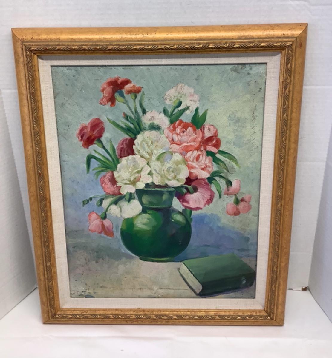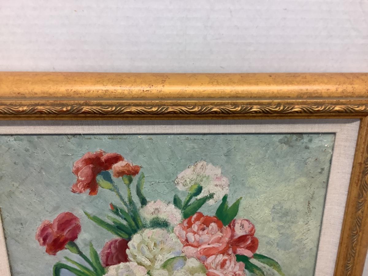 D1190 Framed Floral Oil Painting on Board