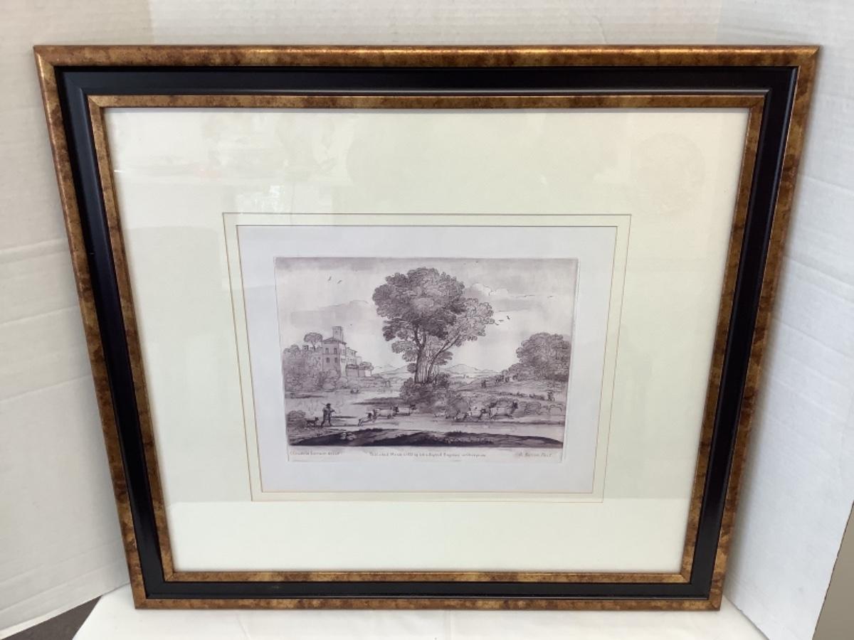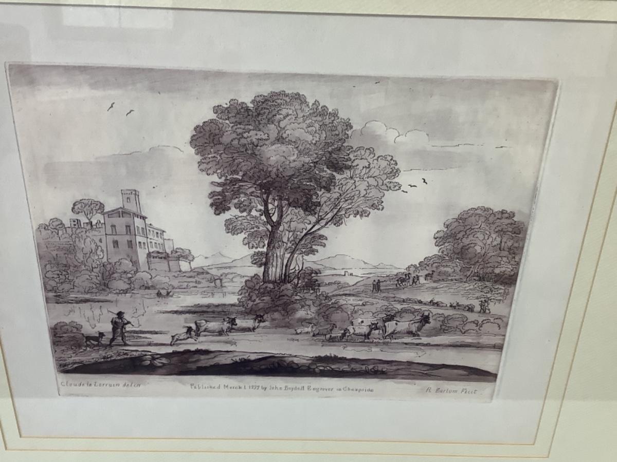D1188 Framed Richard Earlom; Claude Lorraine Sepia Mezzotint Engraving