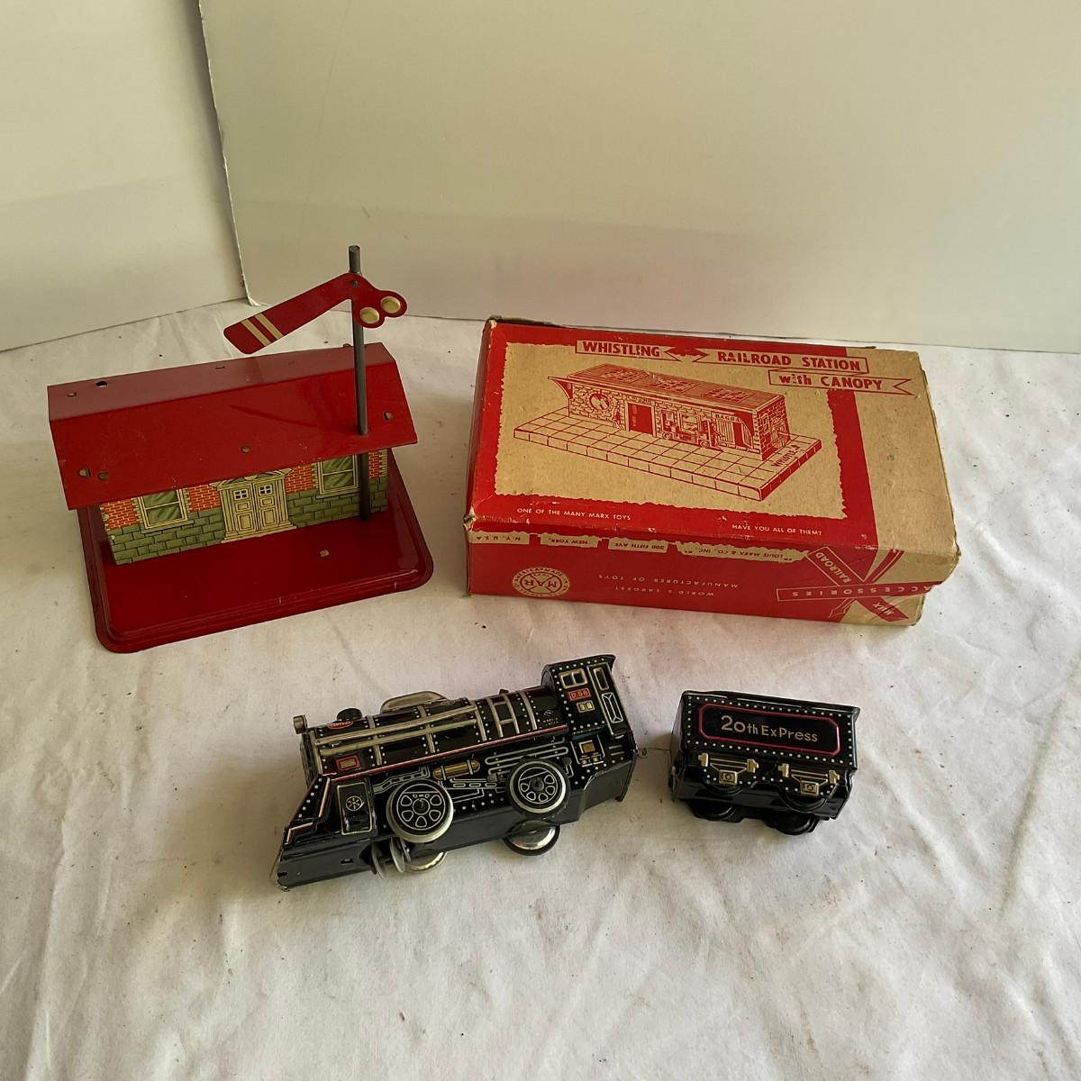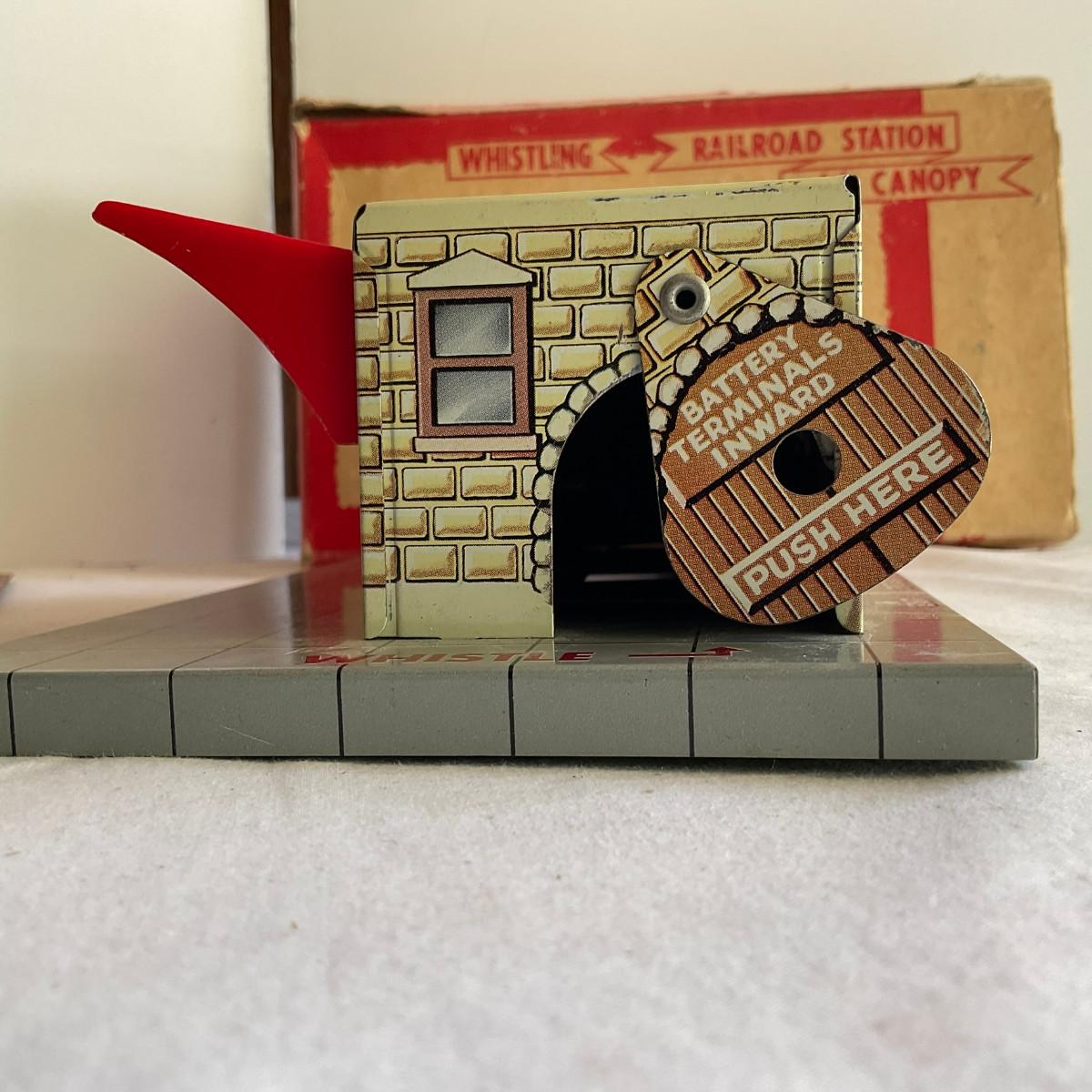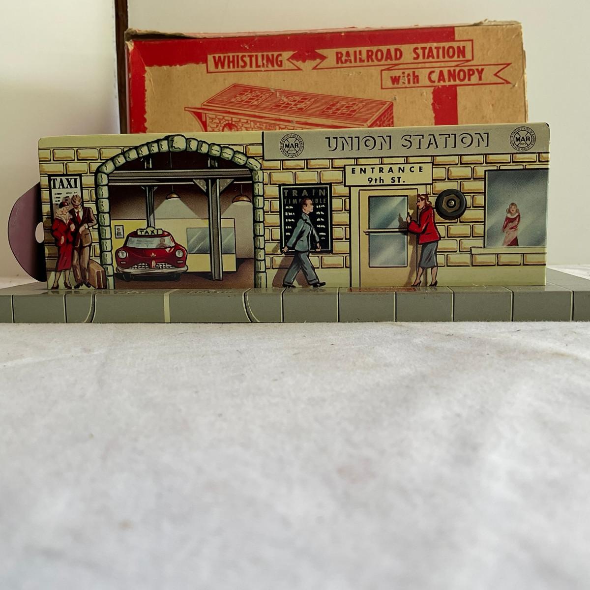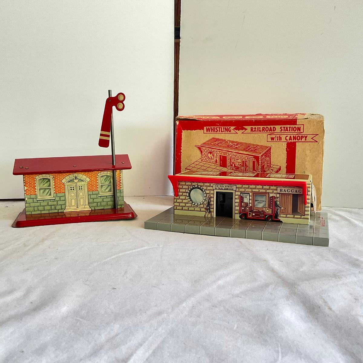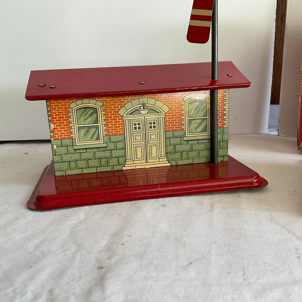 D1197 Antique Marx Whisling Railroad Station Lithograph Train House