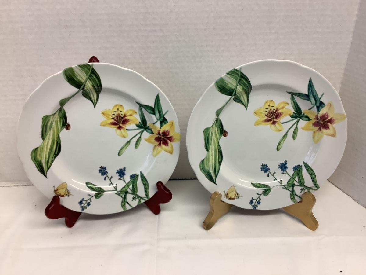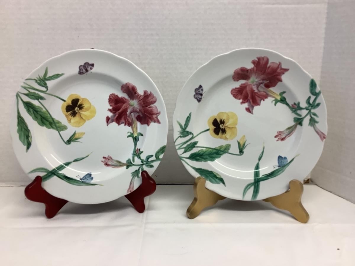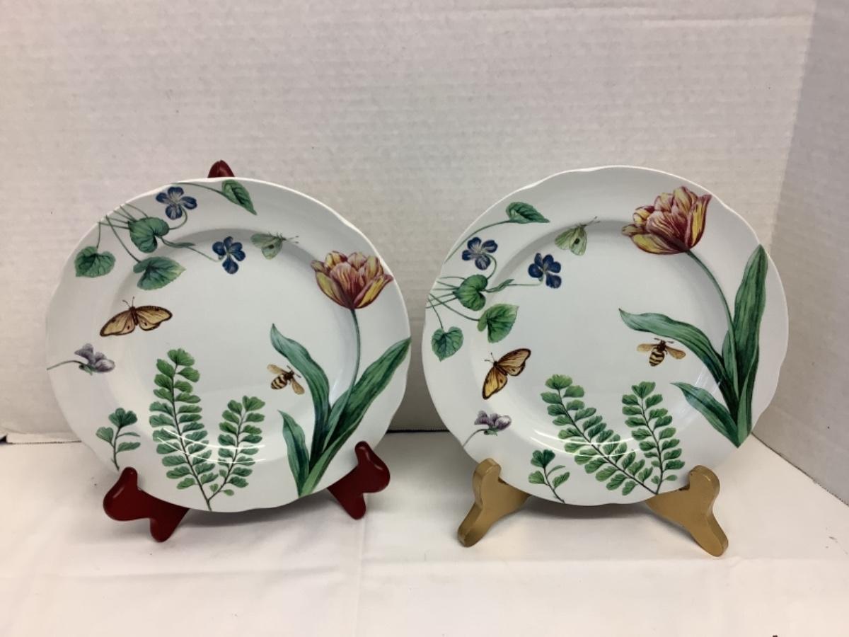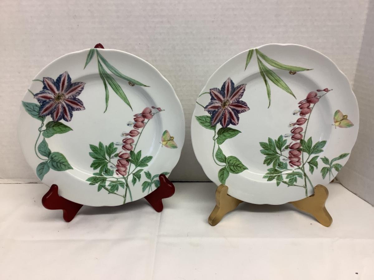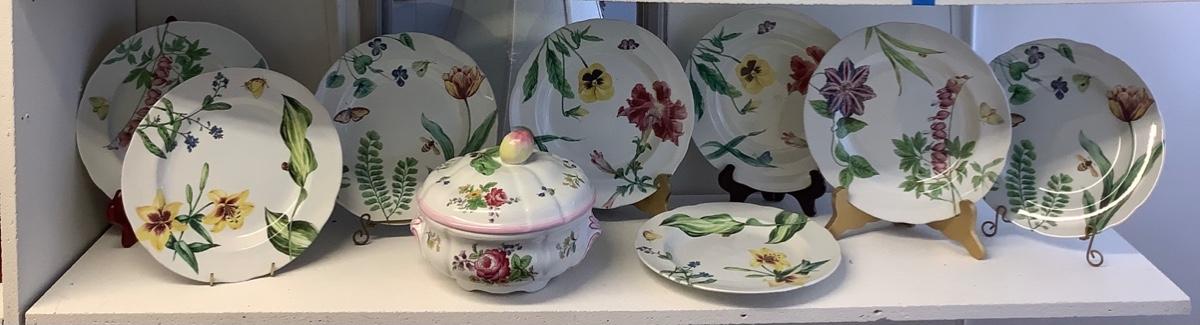 D1200 Set of Eight Spode English Floral Plates and Spode Marlborough Sprays Covered Casserole