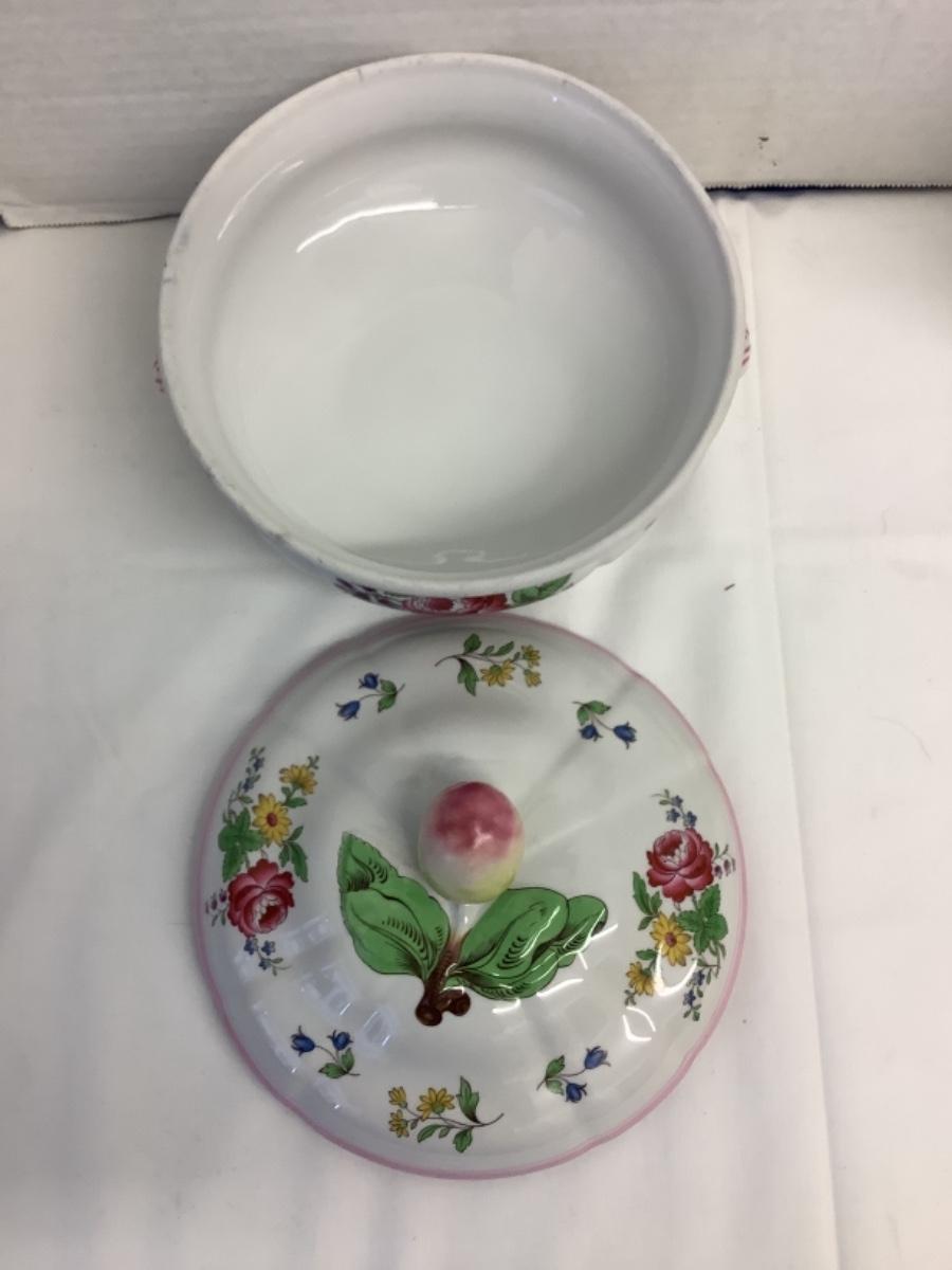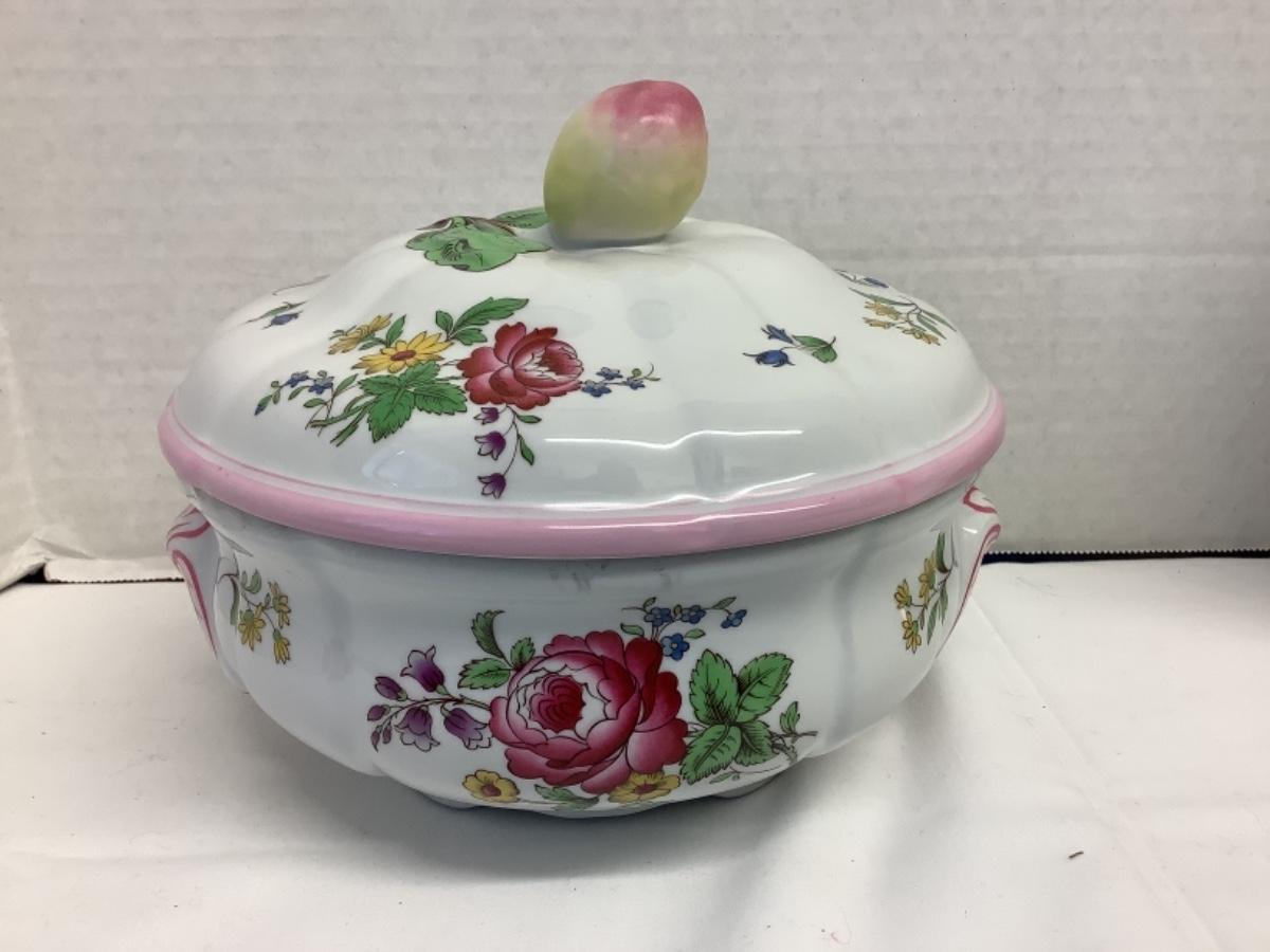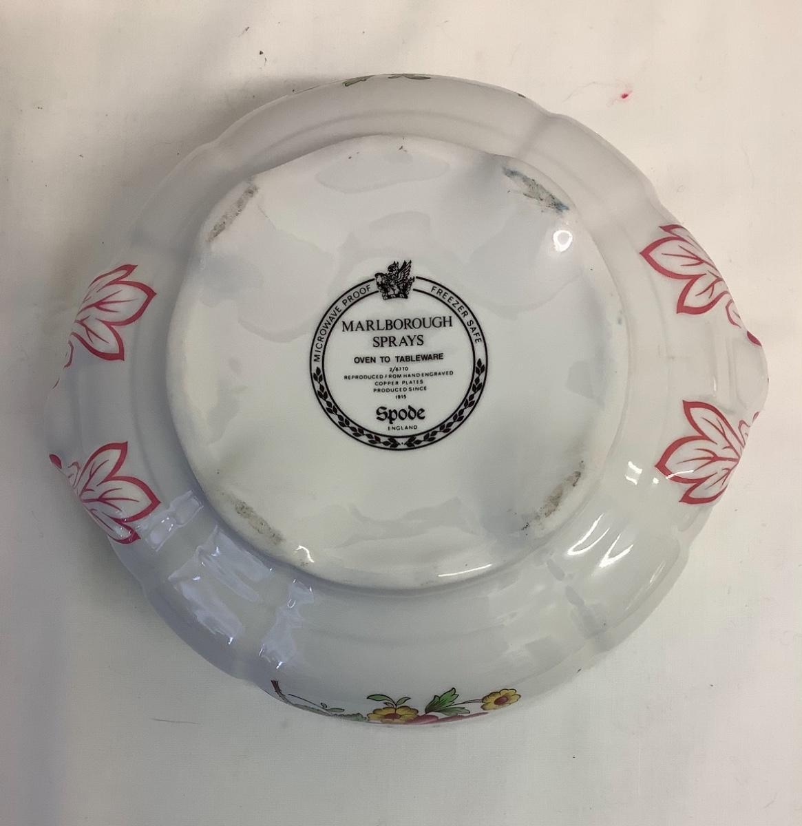 Set of 8 Spode English Floral pattern plates measuring 9-1/4” round all in excellent condition, Spode Marlborough Sprays covered 3 quart casserole measures 9” diameter and 4-1/4” deep not including lid in great condition
