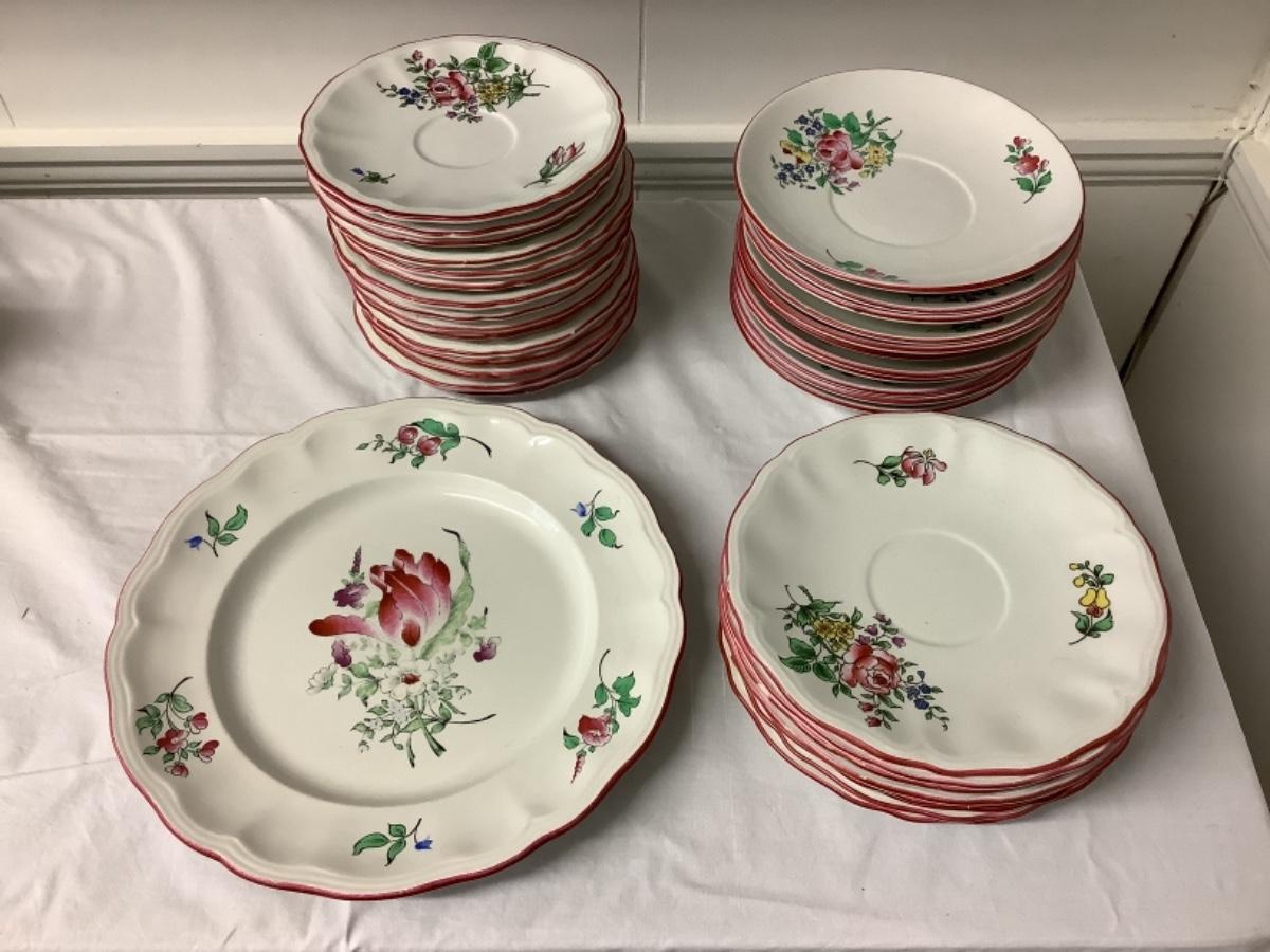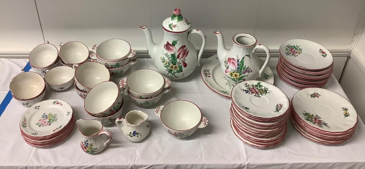 63 piece set of Luneville pottery china, there are quite a few pieces in this lot with small chips in them, please see photos