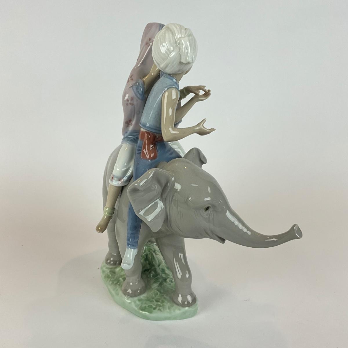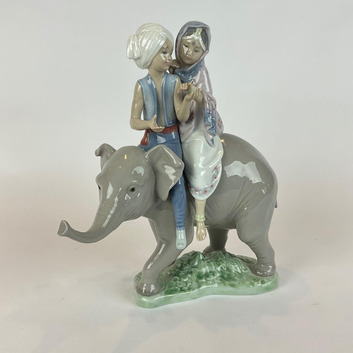 D1297 Lladro Porcelain "Hindu Children Riding Elephant" Figurine
