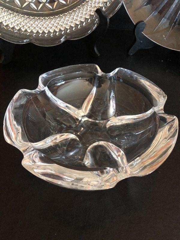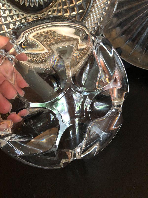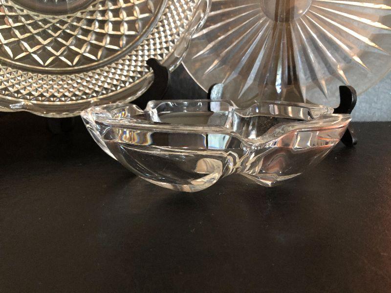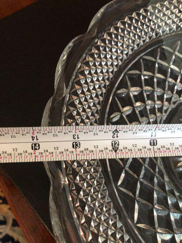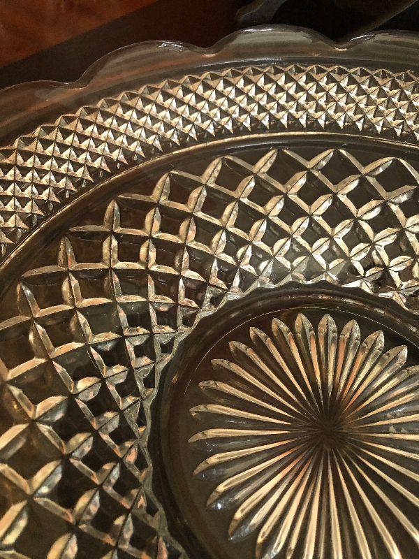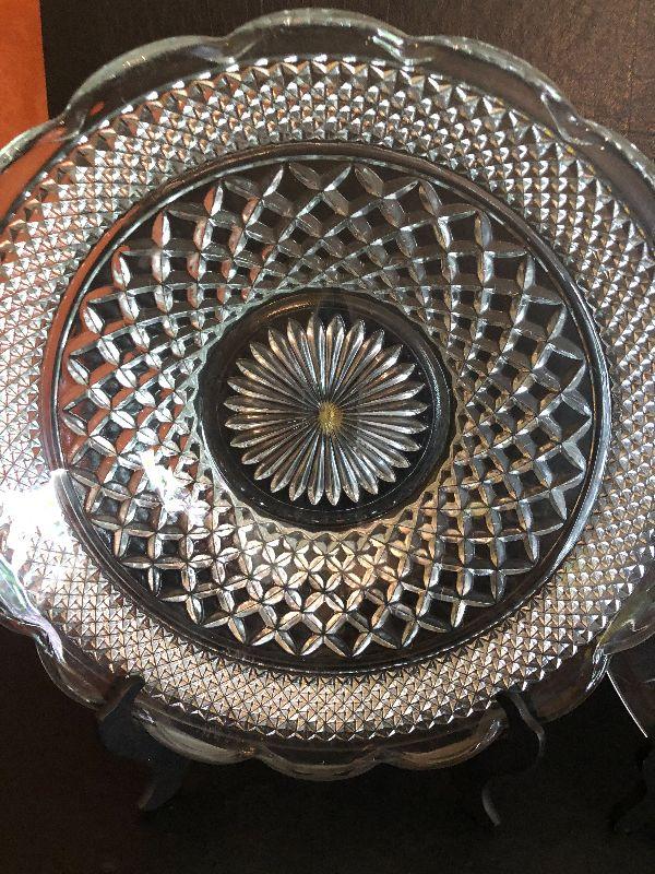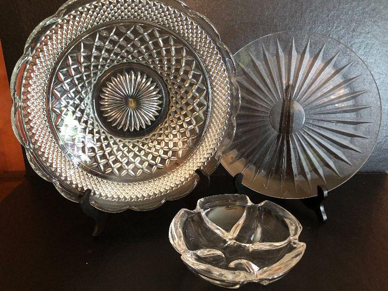 This is a nice lot of decorative glass cake plates and serving pieces. Perfect for holiday parties or everyday serving. Please see pics for sizing and condition