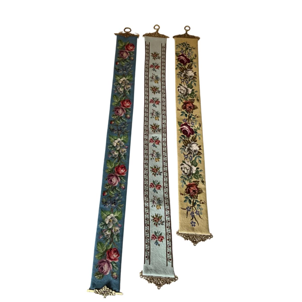 D1392 Set of Three Antique Needlepoint Bell Pulls