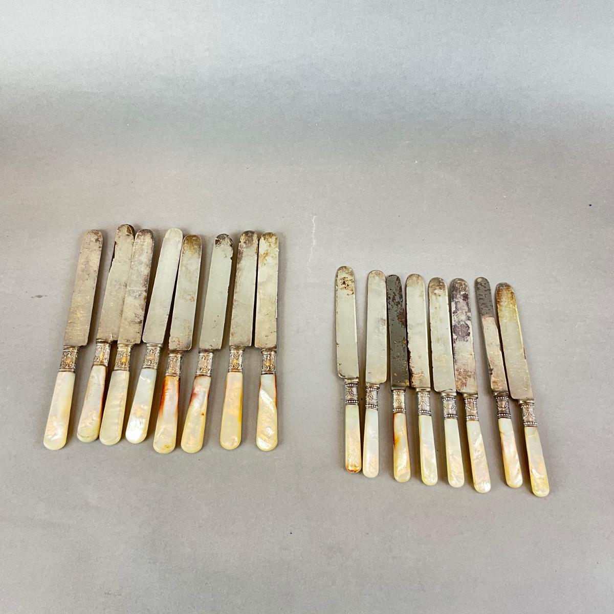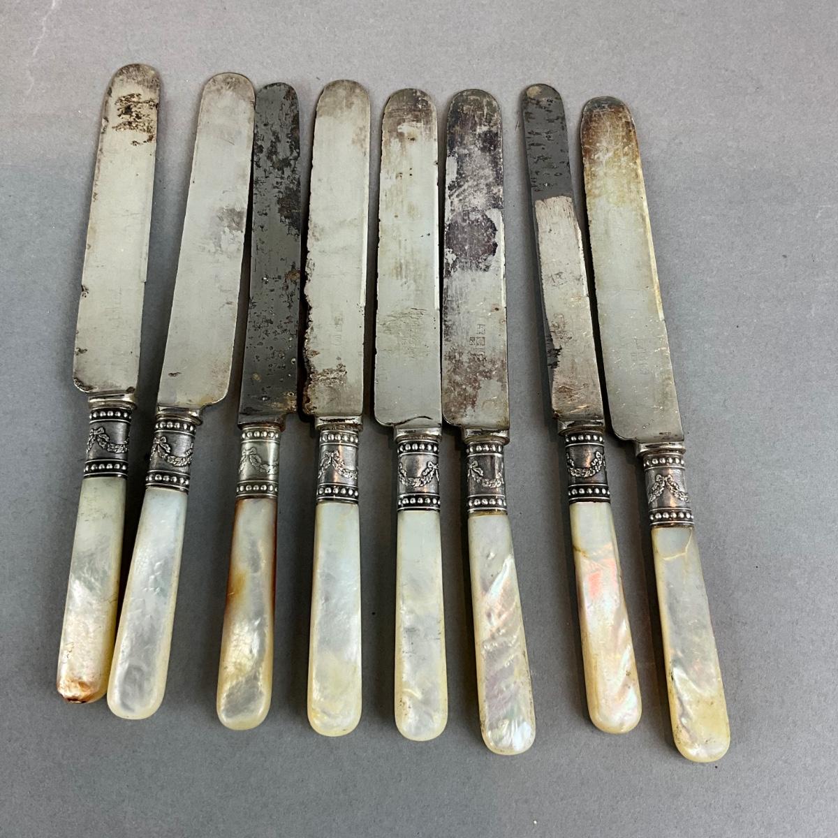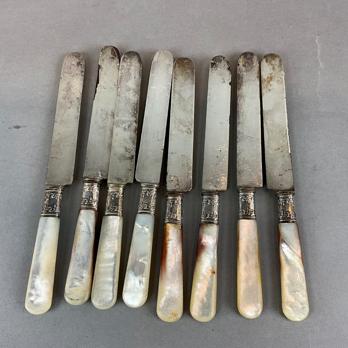 D1422 Set of Antique Mother of Pearl with Sterling Band Knives