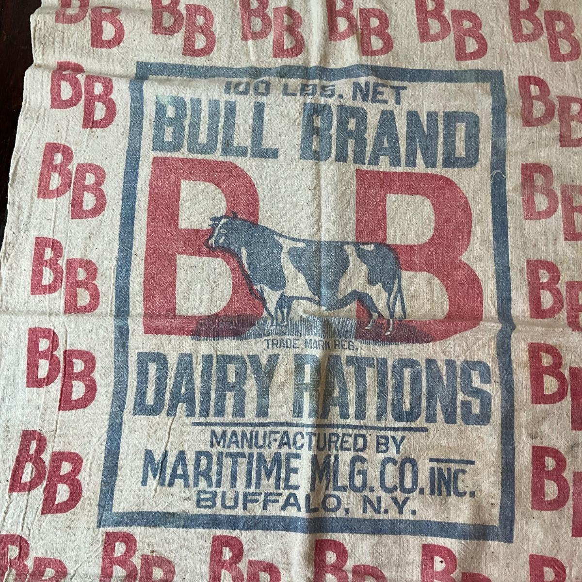 D1469 Antique Bu;; Brand 100lbs Dairy Rations Cloth Bag