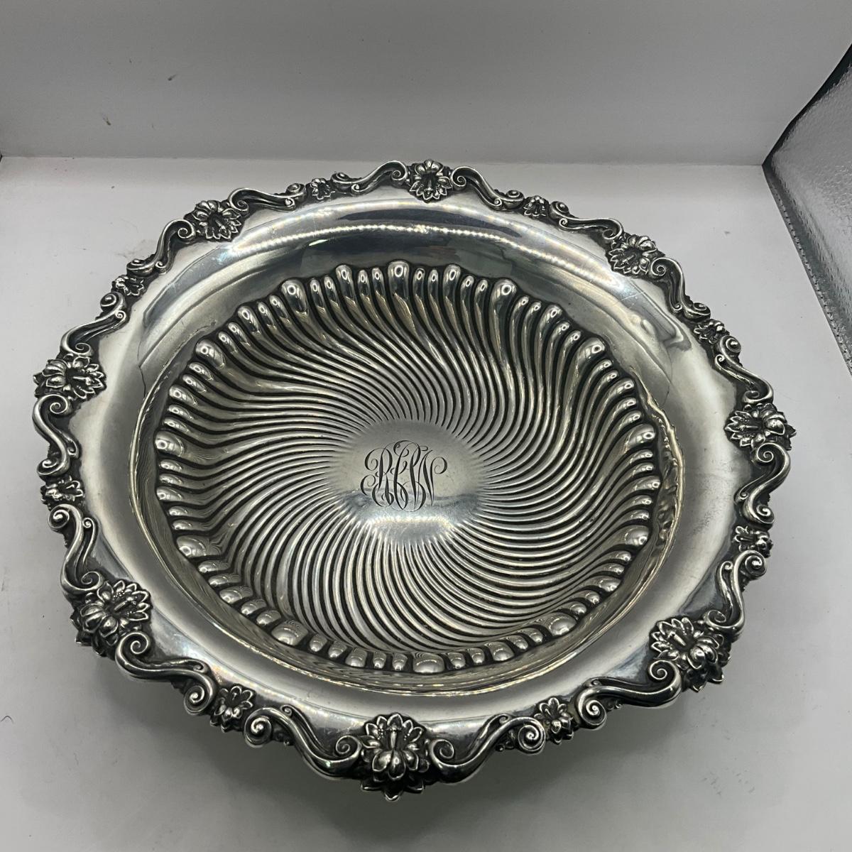 D1555 Large Fluted Bottom Antique Sterling Bowl with Monogram