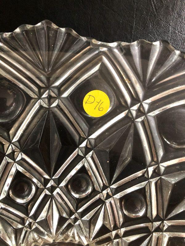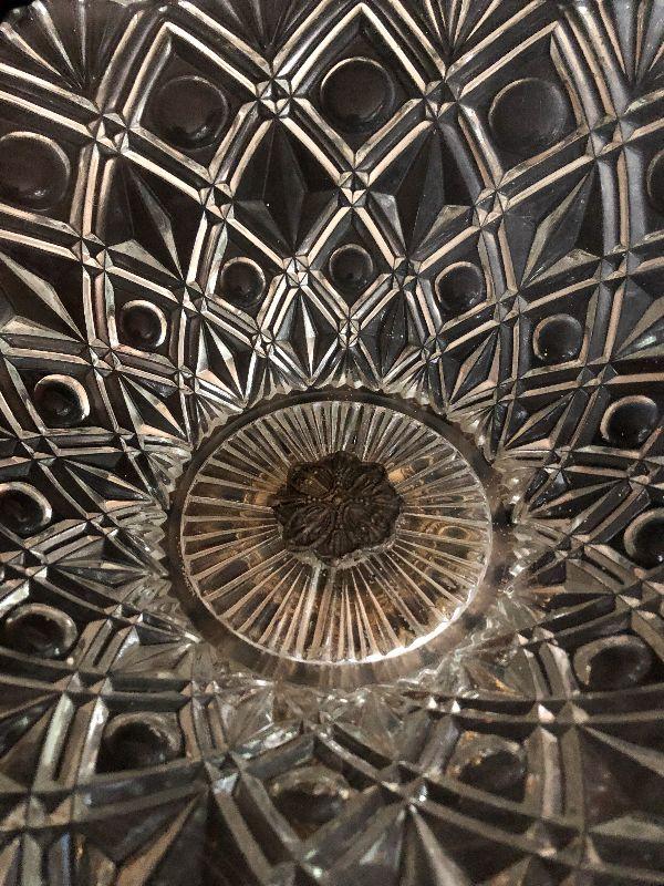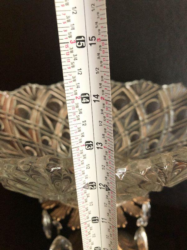D16: Antique Centerpiece, Large Pedestal Cut Glass with Crystals