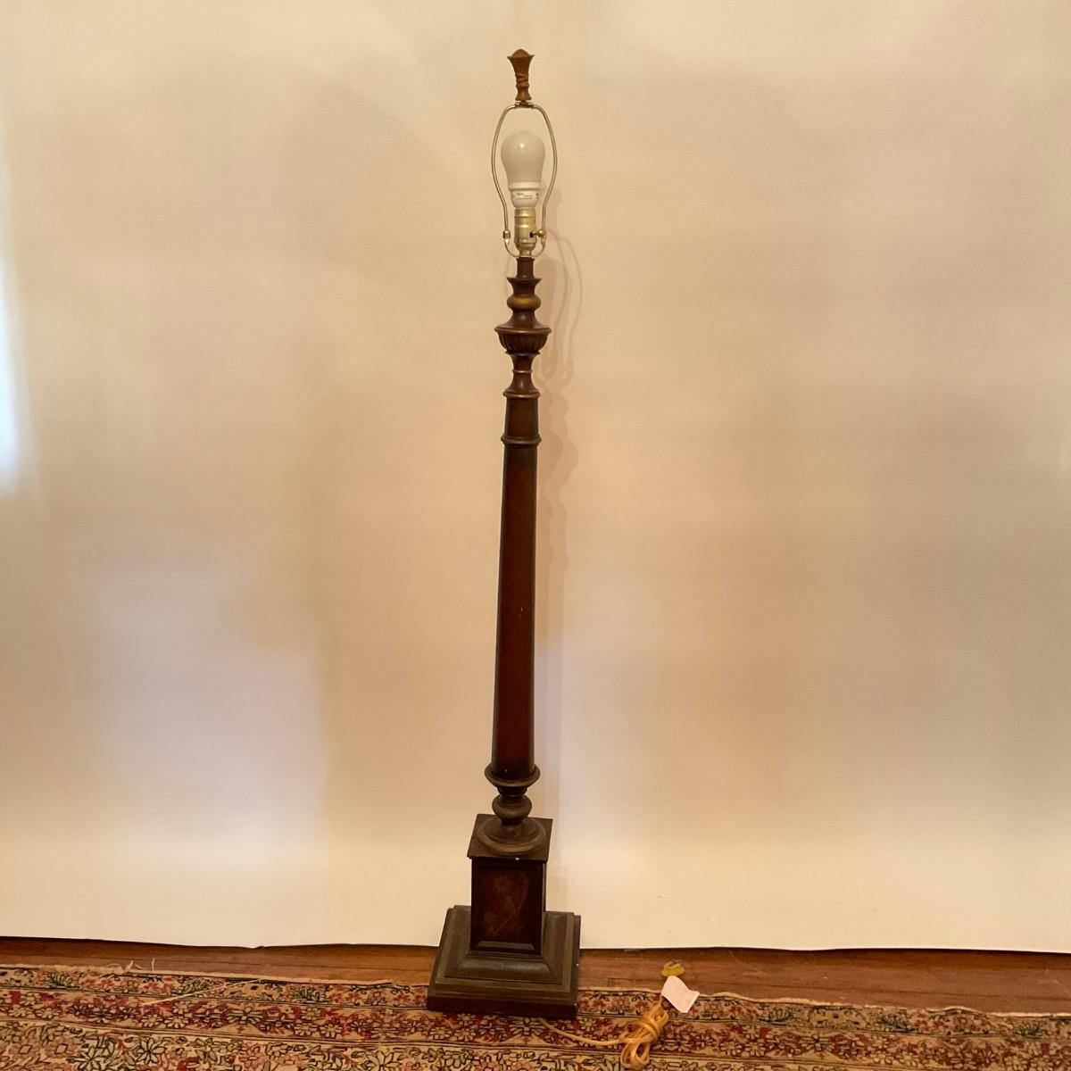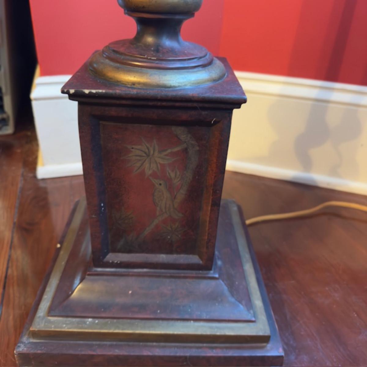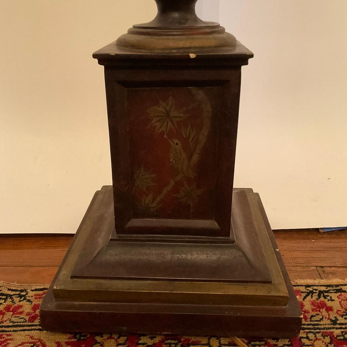 D170 Hand-Painted Burgundy and Gold Leaf and Bird Base Floor Lamp