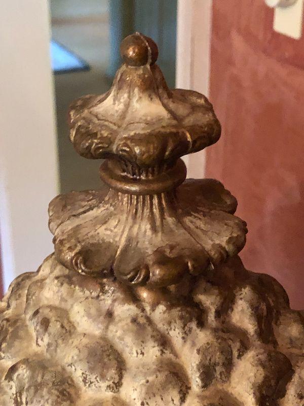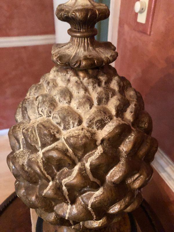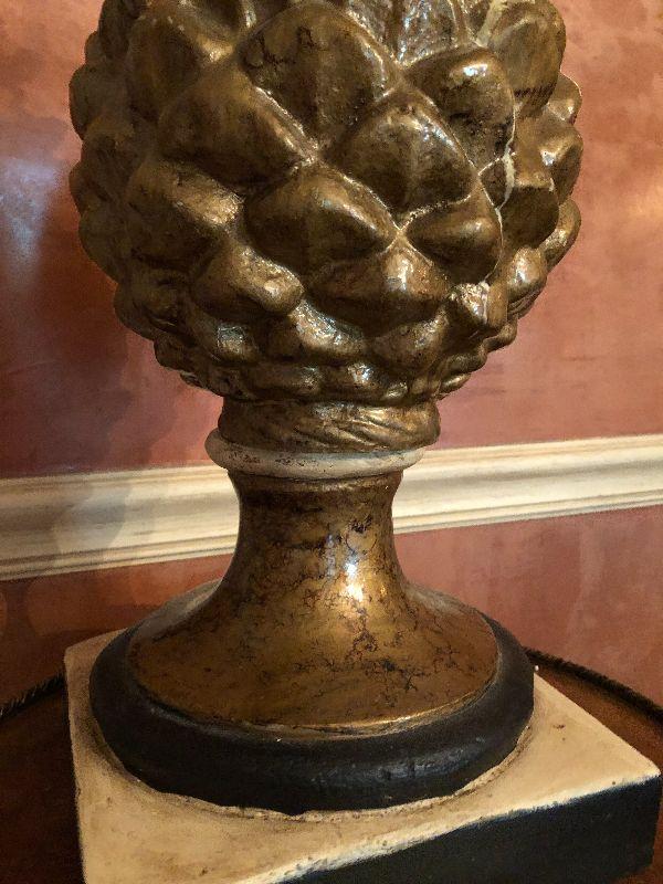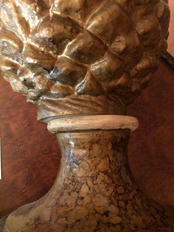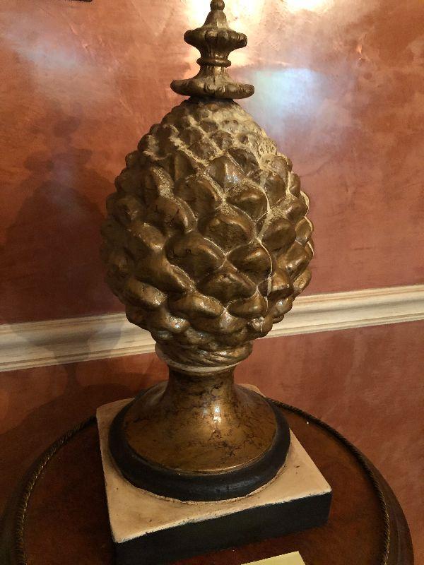 This 16" cast pinecone statuette is quite heavy for it's size. It can be displayed alone on the floor or table, or on a pedestal.