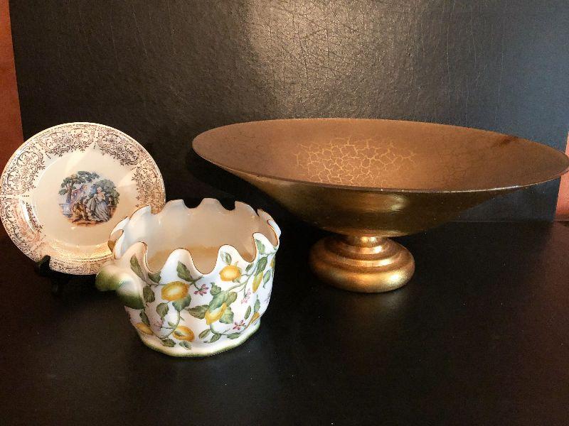 This is a beautiful lot of decor for the home. Large centerpiece and decorative pottery/cermics. Please see pics for sizing, condition, and makers!